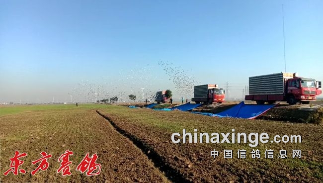 开笼:泗县清晨雾霭弥漫,司放地能见度仅有一公里左右。日出6点43分,太阳冉冉升起,但雾霭非要刷存在感,不肯轻易离去。裁判见多识广沉得住气,明白为了鸽友爱鸽的安全,必须耐心地等待雾霭散去。从清晨等到早上,再从早上等到上午,一直到上午9点08分,雾霭被阳光驱散得不成气候了,能见度估摸有五到十公里了,于是开笼啦。三辆赛鸽车不间断地依次开笼,在笼中卯足了劲的万羽小将一鼓作气冲出赛鸽车跃上蓝天,稍作盘旋集结,便朝着家的方向快速归去。等待放飞的时间可谓漫长,放飞的过程只是一气呵成,瞬间的事儿。