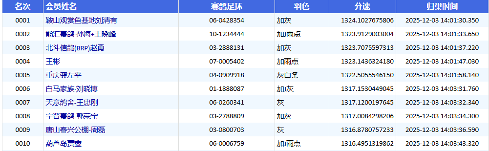 回顾今秋,辽宁赛鸽名家刘清有可谓捷报频传、赛绩惊人。他接连斩获四家公棚赛事冠军,并有多羽赛鸽高位入赏,成绩格外亮眼。