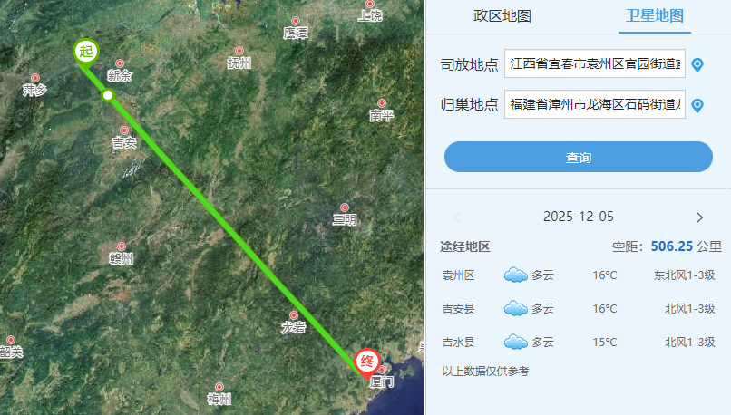 司放地天气为阴,有雾,西北风2级,气温7-16℃。赛线方面,西线山区赛历来是福建赛鸽的残酷试炼场,无数精英在此折戟沉沙。本次赛线贯穿闽赣交界地带,地形以丘陵、河谷为主,夹杂低山路段,既考验信鸽的定向精准度,也对其持续飞行耐力提出一定要求。期待小将们能够突破山区艰险,顺利归巢。
