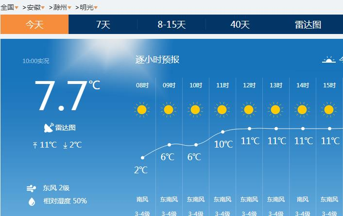明光的上午10点钟,轻雾全部散去,预报图背景呈蓝色。