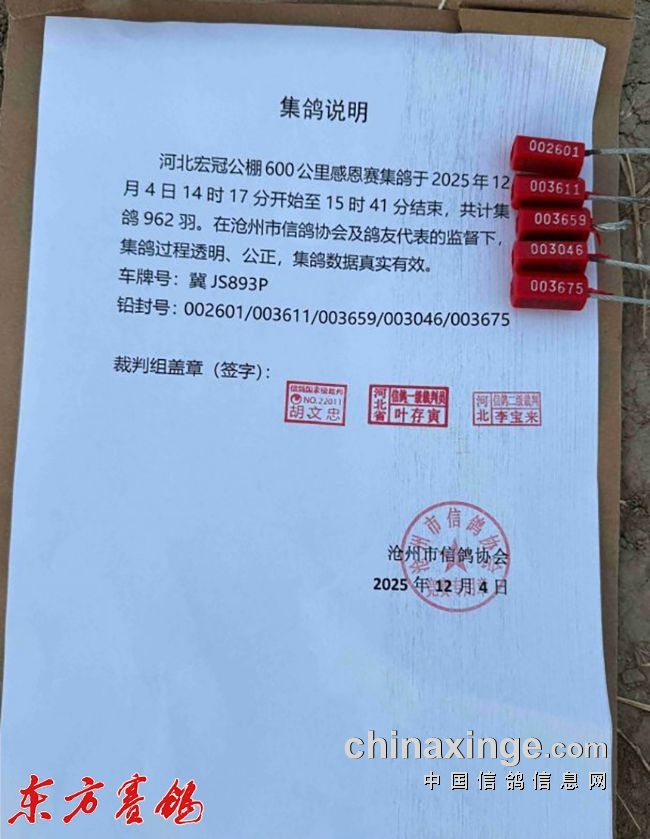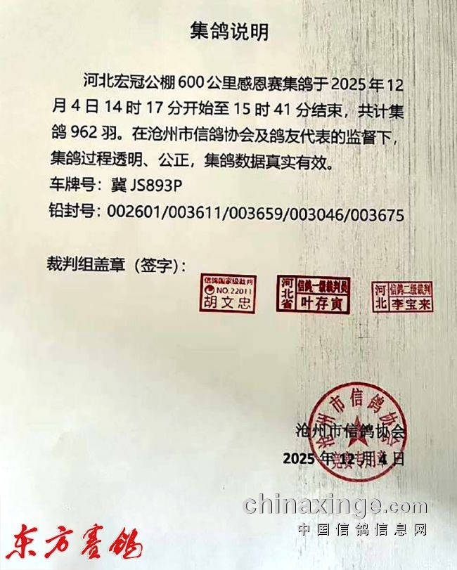 河北宏冠公棚600公里感恩回馈赛奖励名次及奖金