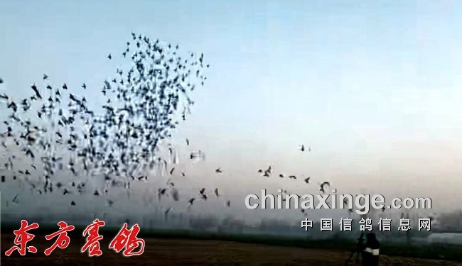 早晨07:16开笼,赛鸽鱼贯而出,近千羽赛鸽在天空舞动似龙,瞬间朝着北方的家归去。今年的放飞好像与往年有所不同,往年放飞,赛鸽多少要在空中盘旋一下,今年大多一出笼就摆龙形飞舞阵。或许今年是蛇年,赛鸽也与时俱进,蓝天当舞台上演广东名曲《金蛇狂舞》。