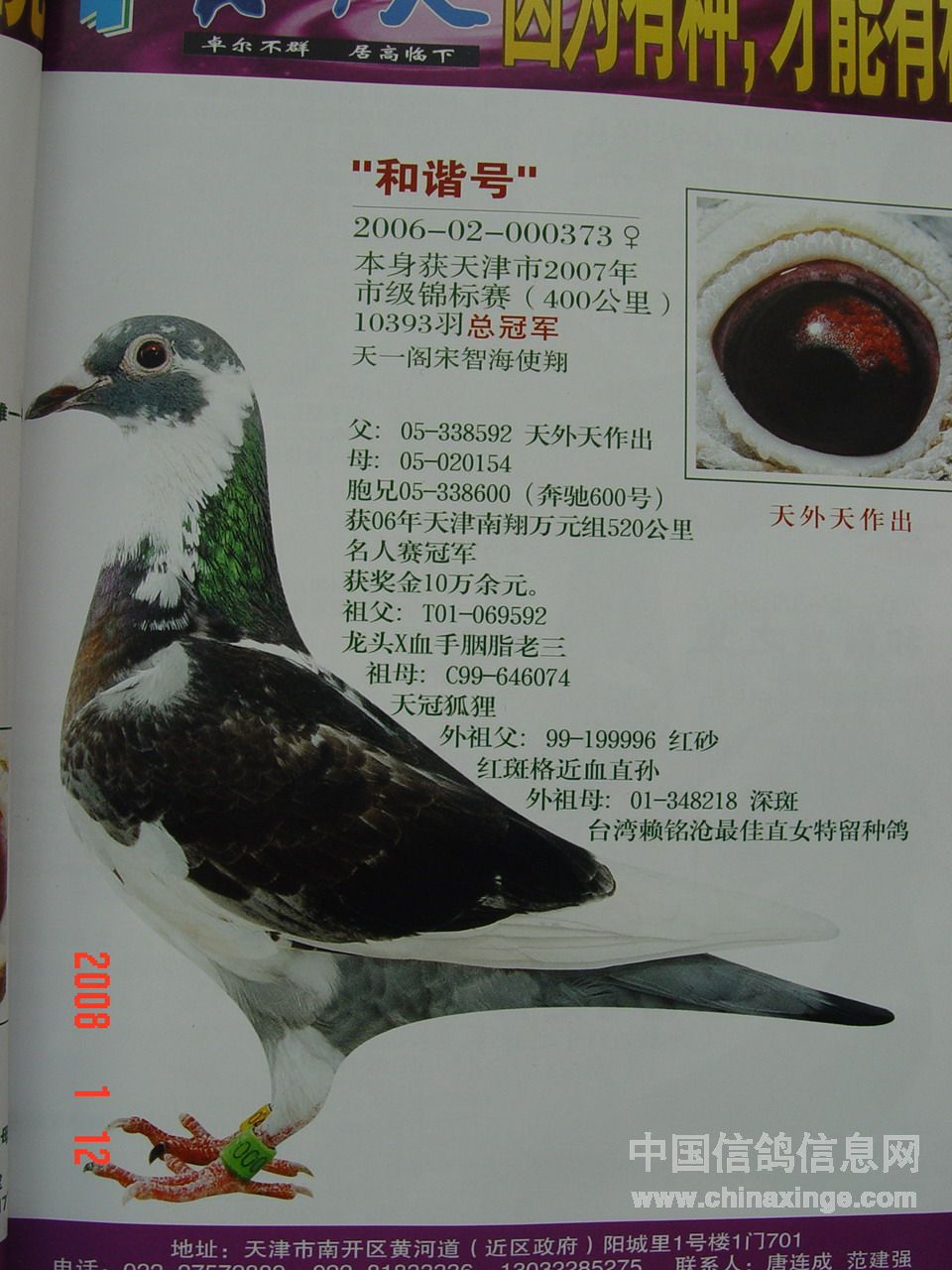 万元组冠军!多么具有诱惑力,全市鸽友无不翘首关往,而这一桂冠恰恰是被市鸽协秘书长夺得。“天津鸽界的老大夺冠,一定有猫腻”顿时非议四起,质疑、侮辱、诽谤、谩骂雪片般的帖子充斥了某网站的论坛。 “先打窝儿,后钓鱼。还是宋智海同志高瞻远瞩。去年起草文件声明参赛,今年就飞了天津西北线的冠军、万元组特比环冠军。预见性不可谓不高,实力不可谓不强,敢为天下先的精神足令三十万会员汗颜”面对这样的铁帖子,宋智海很平和的说:“这个帖子话外之音不是弱智都能明白是什么意思,像这样的帖子还是很客气的。更有甚者,一些别有用心的人,利用这一机会无理取闹,恶意重伤,侮辱诽谤之词不堪入目。我也曾向法院、律师事务所咨询,利用法律的武器维护自己的尊严,但是因为网络是一个虚拟的世界,取证不易,况且并没有对自己造成严重的身体和精神上的伤害,法律维权得不偿失,在一些好朋友的劝慰之下,心情顺畅了许多。该网站的版主也被突如其来的帖子惊扰,好心的打来电话征询我的意见,是否删除,被我婉言谢绝。走自己的路让别人说去吧,我要用平和的心态,真诚面对。试想,我已经决定参赛了,对这样的流言蜚语早有预见,已经有了充分的思想准备,凭我多年的经验积淀,先进的饲养理念,夺得冠军凭的是实力,怕他何来。二十多年主持协会工作经历,只要你坚持原则,势必触犯一些人或团体的利益,个别小人伺机报复一下也很正常,对此我早有心理准备,遗憾地是,一些不明真相的鸽友随波逐流令人痛心。难怪鸽坛学徒发帖子说,‘十七年没参赛,在他准备参赛的时候,曾咨询过大家的意见,我就说:你飞出100名就是臭楼,飞冠军别人准会说你作弊,真的也是假的,不幸被我言中了……网上肯定有攻击他的,也不幸被我言中了……’木秀于林,风必摧之;堆出于岸,流必湍之,行高于人,众必非之。我自信我是一个聪明人”。