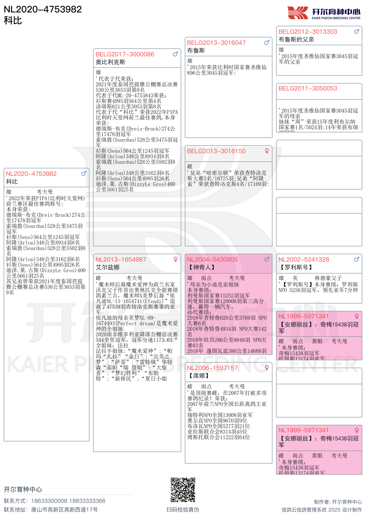 父亲一方自带长距离竞翔基因,来自马克·波林舍内的圣维仙全国冠军“布鲁斯”,底蕴扎实;