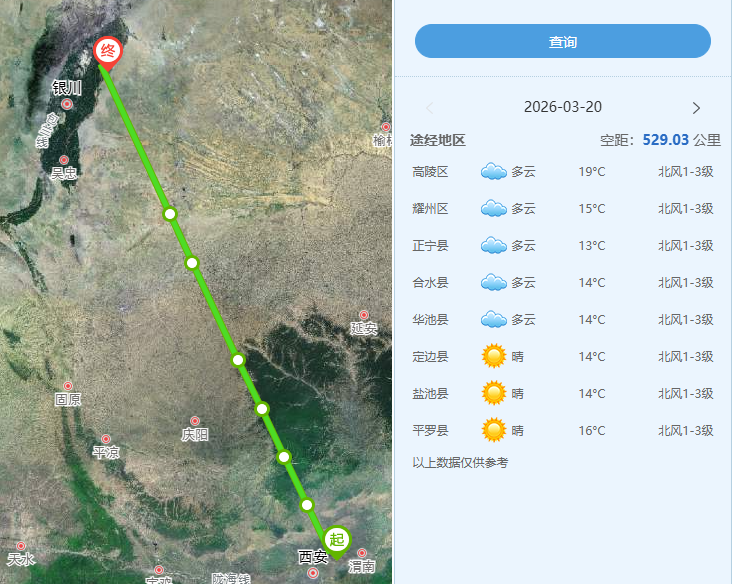 今日司放地天气晴,鸽群走势良好。沿途天气多云转晴,风力1-3级,最高温16℃。地形方面,整体呈东南-西北走向,赛鸽需要从平原进入高原地区,穿越黄土沟壑。若遇逆风天气或干扰气流,赛鸽很有可能会体能透支,迷失方向。