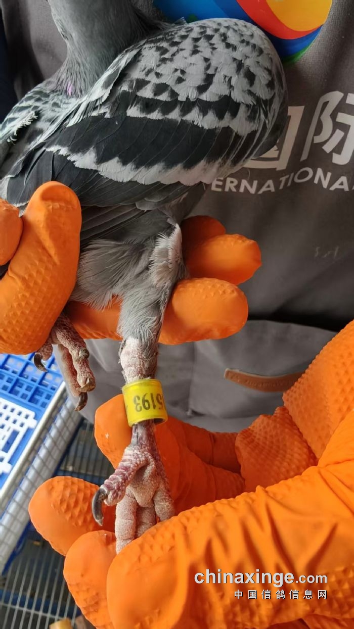 紧随其后归巢的亚军,环号2025-15-1015193,黄眼雨点雌,分速1408.4031米/分。