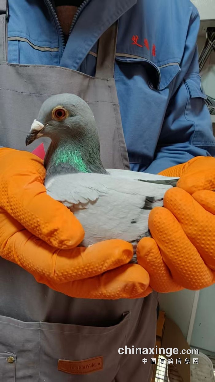 殿军鸽环号2025-15-0655512,黄眼灰色雌,分速1407.1825米/分。