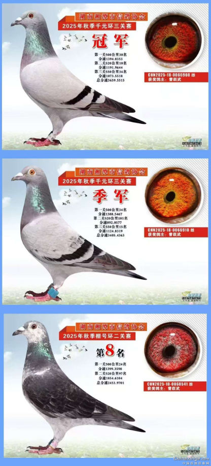 无独有偶,湖南赛鸽爱好者张清利,在2025年协会年终总结拍卖会上,同样斥巨资将自家斩获的千元环冠军、亚军、季军鸽悉数拍回,只为守住本血根基。这两位高手的选择,绝非盲目投入,而是看透了赛鸽事业的本质:核心血统是鸽舍的灵魂,留住冠军,就是留住未来发展的无限可能。