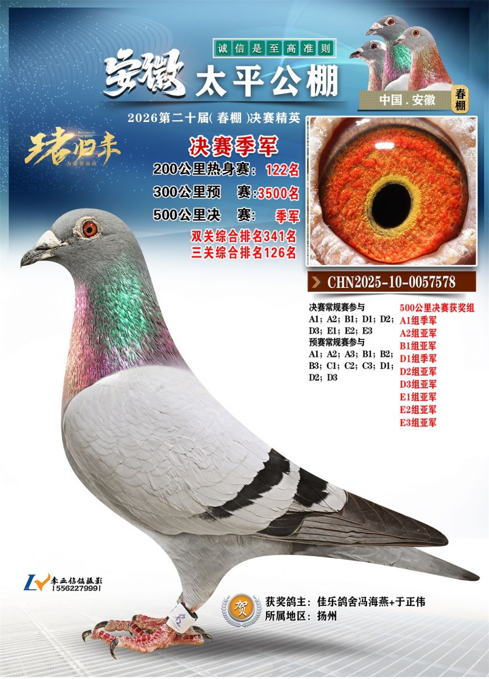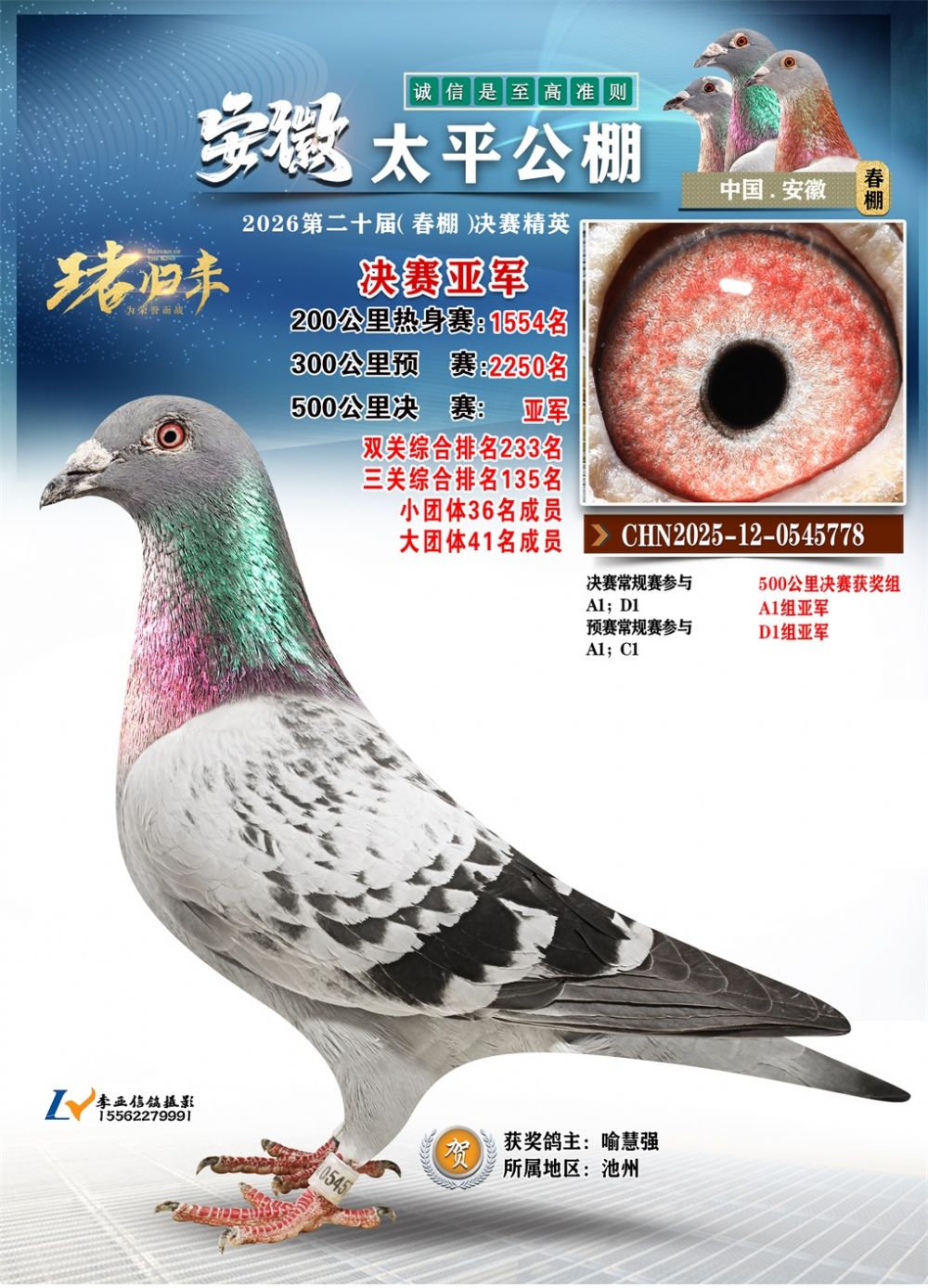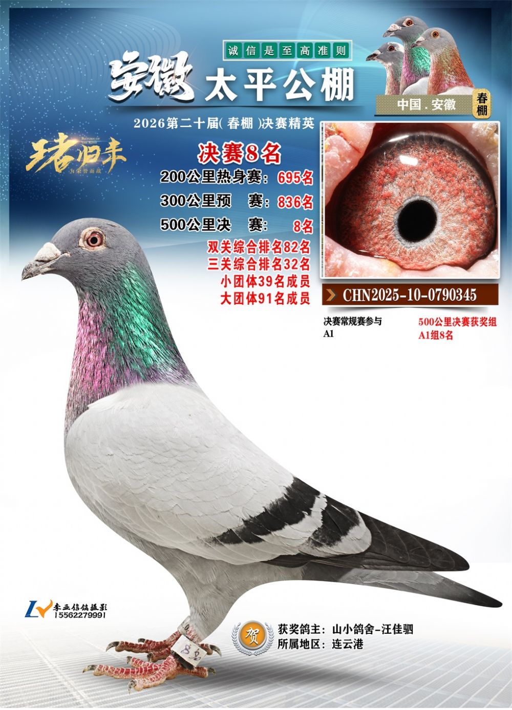 二十载峥嵘岁月,铸就精英品牌;二十年砥砺前行,见证王者归来。2026年,安徽蚌埠太平公棚第二十届春赛于4月初圆满落下帷幕,奏响蓝天凯歌。本届赛事群英荟萃,共收鸽16047羽,历经80公里收费站、200公里首关、300公里二关,直至500公里决赛决战苍穹,最终两千多羽精英凯旋。随后,530公里加战赛挑战再升级,共计四百羽悍将顽强归来。