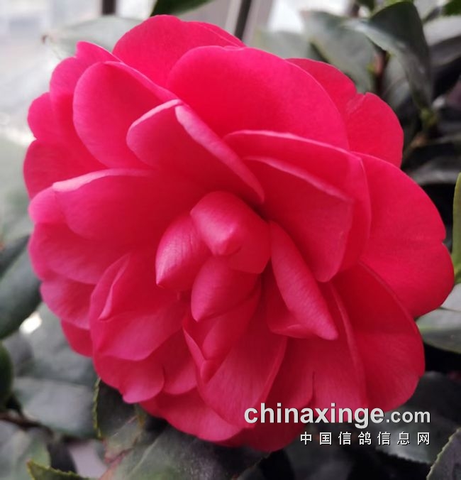 7)红色重瓣山茶花朵其外形在100mm以上