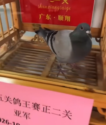 亚军15分钟后归巢,来自鸽友徐晓煌,赛鸽环号1480218,飞行分速660.3618米/分,打钟时间14点45分。