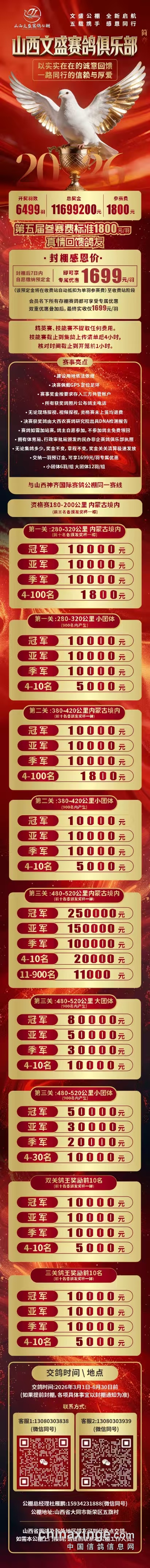 所有获奖鸽照片公布鸽主电话无论现场探视、视频探视,资格赛未上笼均退费
