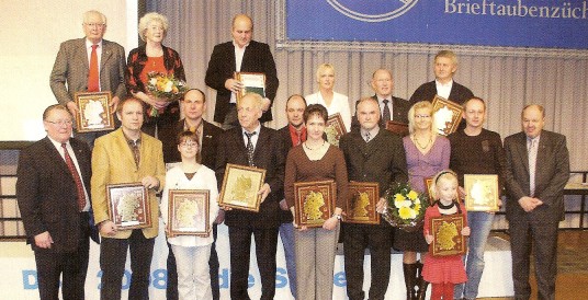 信鸽运动中不乏各个年龄层的杰出女性。本图拍摄取自2007年协会冠军杯的受奖仪式。