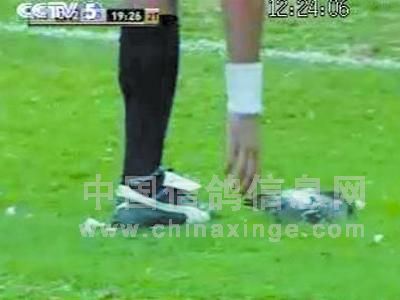 不得已,主裁判只能停下比赛,亲自上阵将鸽子的尸体送出场外,可怜的鸽子身上还在零散地掉落羽毛。
