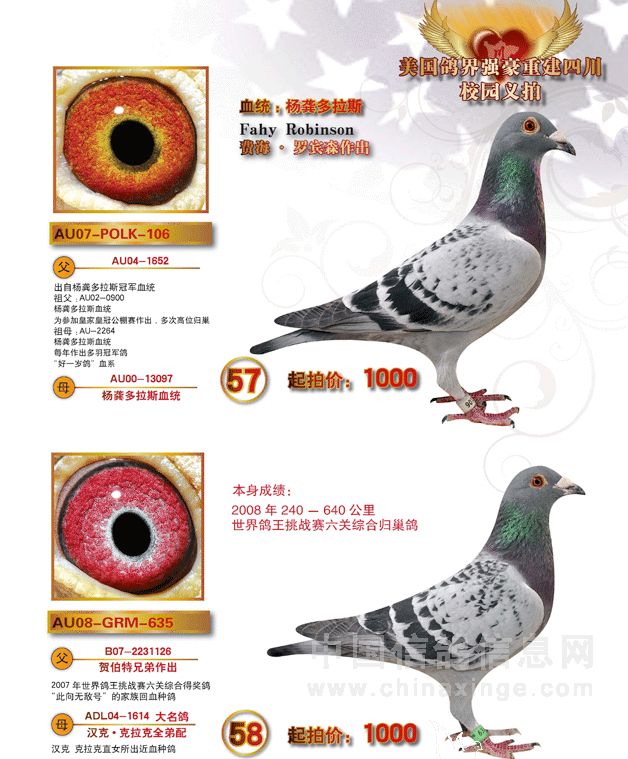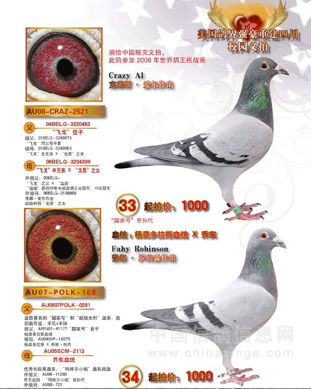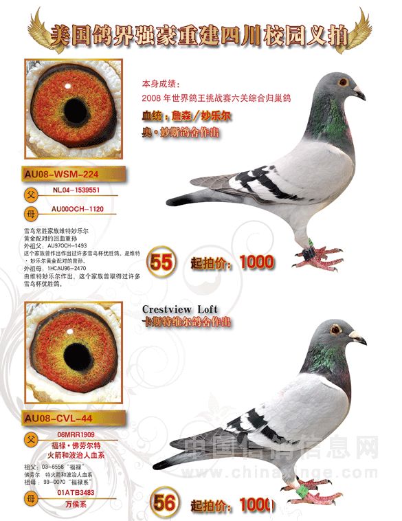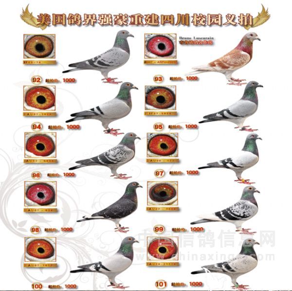 我们诚挚的邀请各位鸽友参加此次义拍,共同为四川灾区重建、信鸽文化振兴做出一份贡献。