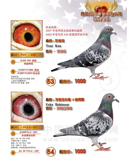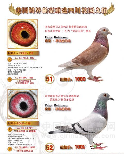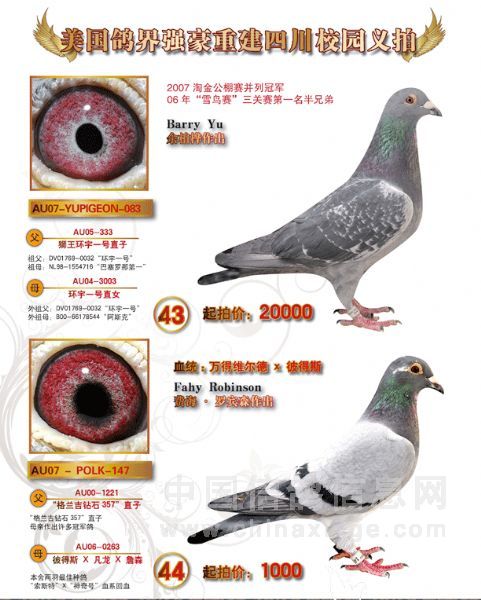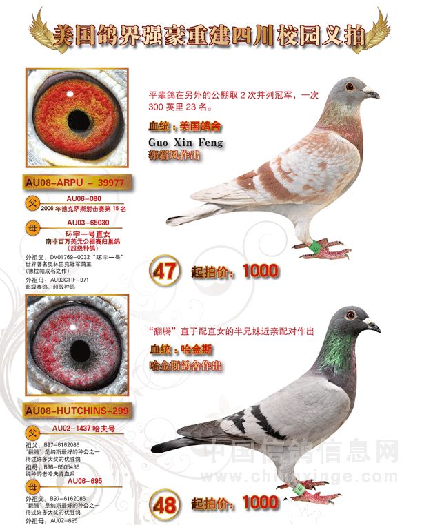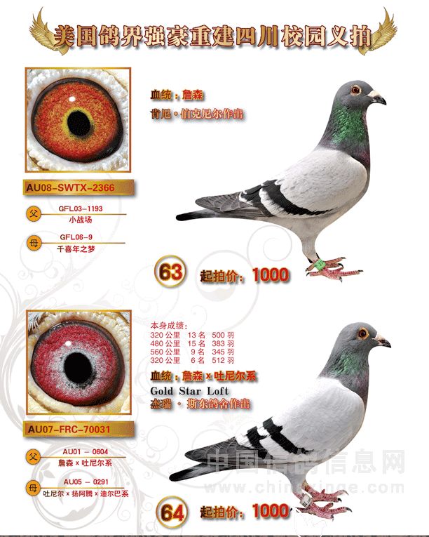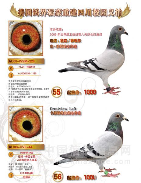 本次义拍不仅会成为中美鸽友在信鸽领域交流的桥梁,而且更可以体现出两国鸽友对于四川灾区儿童的无限爱心,让信鸽真正成为爱心使者,传递大爱无疆的旋律。