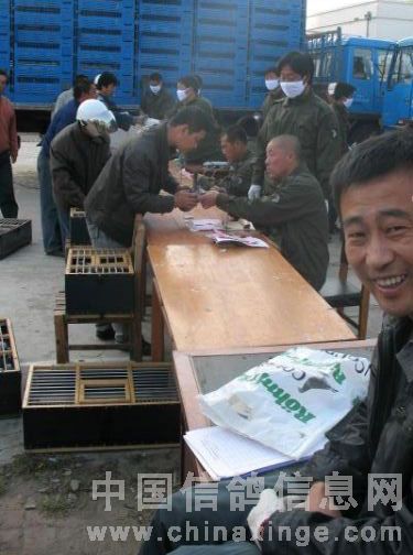 3、赛事搞的很灵活。 4、副主席马启龙和秘书长李寿江在认真工作。 5、为鸽友收参赛费。 6、听说有大奖,我也多交几羽鸽子。