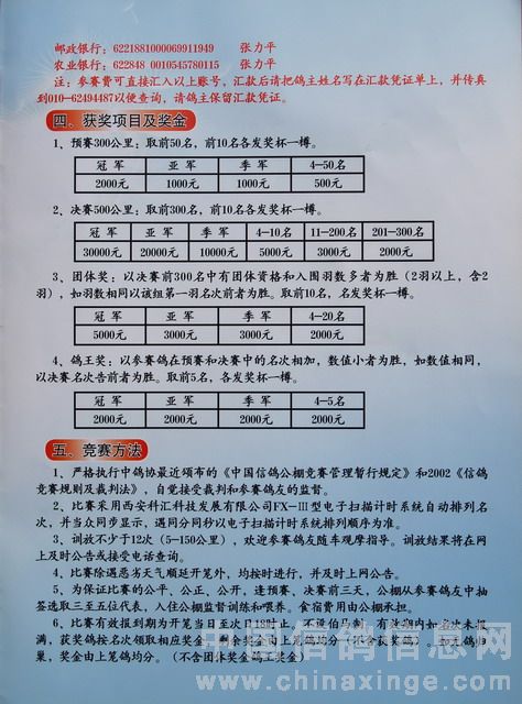 新规则体现了收费低,奖面宽,奖项多的特点。300元低标准收取参赛费照顾了普通鸽友的参赛需求。同时突出了公平收费的原则,凡是没有进入赛点(预赛)的赛鸽,公棚将退还参赛费,保证了参赛鸽友不花冤枉钱。