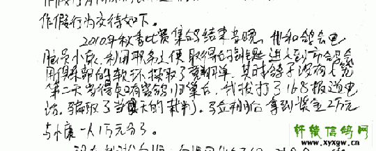 再说张毅杰得知他的同伙康某已自首,他认为天之将塌,与康攻守同盟是靠不住的。于是在5月23日深夜23点左右打电话给俱乐部负责人徐老师自首,次日5月24日早上七点左右张毅杰将写好的有关作弊材料交给徐老师(交待材料摘要附后),徐随即交给了市鸽协副主席熊伯鸥先生。如是这件陈年作弊积案,在两协会联手共同努力下告破!