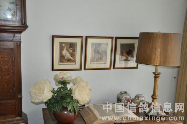 年初在荷兰海尔曼.比佛丹家做客,看到了他N年前在德国慕尼黑淘到的1883年古董鸽子石版画数张,装裱得很漂亮,摆放得也雅致,老外家里的装饰风格各有千秋。当海尔曼向我们炫耀这些收藏时,我和他说我有收藏这个石版系列的50张全套版画,他表现得很惊诧。