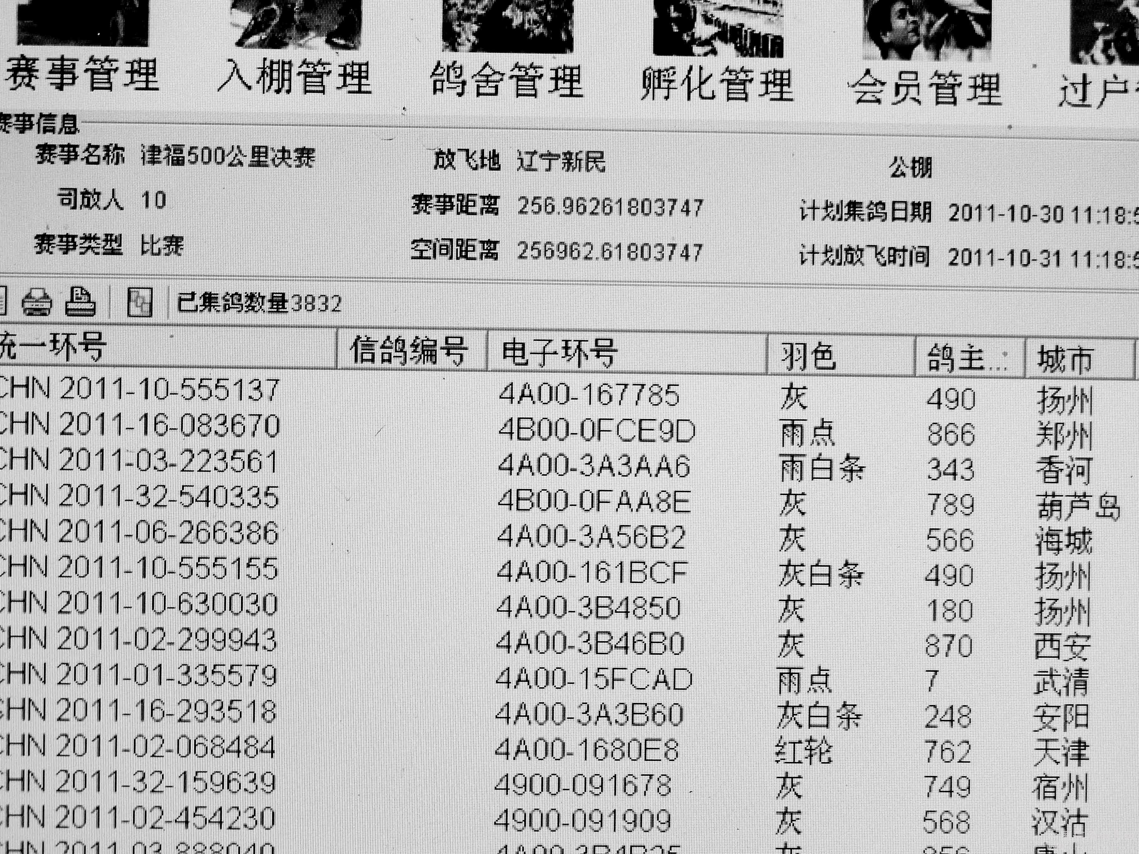 每年的10月至11月下旬,都是中国的赛鸽“气温”最高的时间段。各地的大奖金比赛主要集中于此,300多家公棚决赛、各类特比环赛,均是当前鸽友全年投入资金、精力,乃至情感最多的时段!是收获、还是亏损?现在正进入关健节点!
