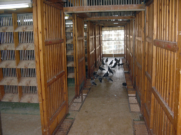 公司大门左侧的一栋大楼,除底层是加工车间外,以上几层全是鸽舍,由摆满了每间屋子的成排的不锈钢配对笼上,可窥其规模之硕大。最上一层是海霸王的赛鸽舍,从楼梯可以方便地直达楼顶,坐在“观赛室”或室外,能近距离欣赏赛鸽飞归的实况。
