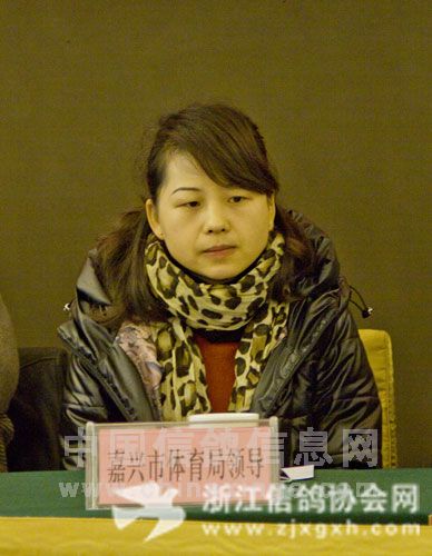 会议由浙江省信鸽协会长秘书长孙浙东主持。主席台上就坐的人有省信鸽协会主席李有福,省信鸽协会副主席兼竞翔部长金光明,省信鸽协会副主席、温州鸽会主席陈美旺,省信鸽协会副主席、台州鸽会主席蔡根清,嘉兴市体育局领导於成红,嘉兴市社团管理局领导徐燕,嘉兴市信鸽协会主席李永伟,省信鸽协会秘书长孙浙东。