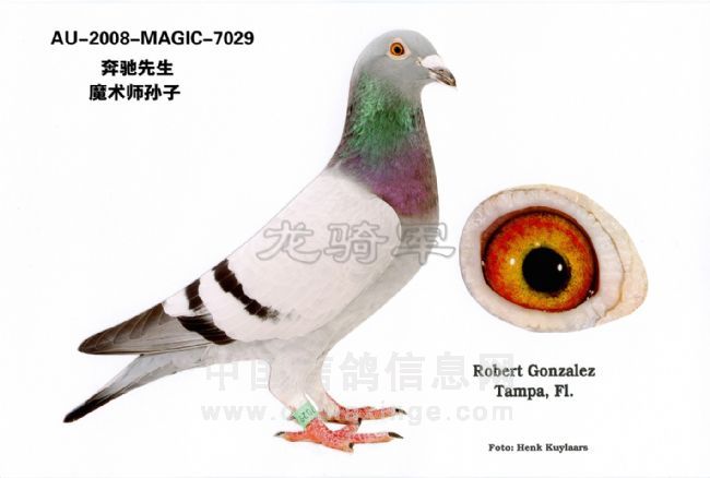 2)詹森血线另一重要黄金种雄98-OHF-9590,“金牌阿瑞斯通纳”,该鸽后裔与超级73凡龙“魔术师”血线搭配成为罗伯特保持赛鸽定向准确、飞翔超速特性的重要手段。如AU 2006 MAGIC 5229获得2006年美国荣光殿堂鸽王冠军、全国幼鸽鸽王4名;4143获得140鸽舍2473羽天柏市联赛总冠军; 2006 MAGIC 5027获得2008 国家评比中距离2名;7029“梅赛德斯先生”梅赛德斯公棚团体冠军成员之一等等。