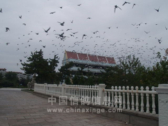 这是一座由乳山市园林管理处东方广场管理所建造的一座具有相当规模的专业广场鸽鸽舍。鸽舍是由三层锥形结构主题楼组成,养鸽3000羽,由专业管理人员负责管理。鸽舍坐落在郁郁葱葱的松林之间,说是一道靓丽的风景线也不为过。红瓦,绿林,灰、白、雨点颜色的鸽群飞翔在蓝天,降落在广场,绿林,吸引游人驻足观赏拍照,小朋友与鸽友好为伴,呈现出一派动静相兼,生机盎然,温馨和谐的自然景象。遗憾的是鸽舍管理负责人虽然非常热情,但是不愿透露内部详情。推荐到上级主管部门,又因负责人忙于公务与我等待时间有限未能采访。不过,值得安慰的是饲养员非常配合,呼唤广场鸽进行了拍照。