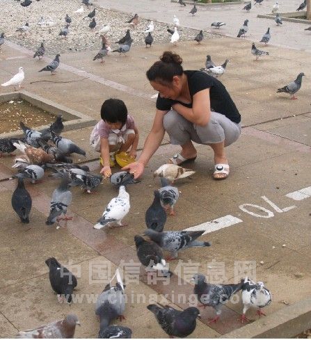 广场鸽作为和平、友谊、团结、圣洁的象征被人们所喜爱,她不仅体现了一种文化,也高度体现了人们向往和平的愿望和精神寄托。因而,人们给鸽子赋予了非凡的内涵,备受人们的喜爱。 早在《圣经》(旧约·创世纪)一节中就有这样的记载:上古时期天降大雨,洪水暴发漫无天际,诺亚一家按照上帝的旨意带着万物众生乘坐方舟避难,漂泊数日。一天诺亚为了打探洪水是否退去,从方舟上放出一只鸽子让它去探明洪水情况,鸽子从陆地衔回一枝橄榄枝,已示洪水消退,诺亚方知平安到来。上岸他们看到长满绿色树木的山谷和开着鲜花的幽静小道。为了感激鸽子的功劳,从此,人们就以鸽子和橄榄枝来表示平安与和平。 17世纪,德意志帝国的许多城市发行过一套图案为一只口衔橄榄枝的鸽子纪念币,图案底部镌有“圣鸽保佑和平”的字款。 鸽子作为世界和平的象征并为世人所公认当始于毕加索。1940年希特勒攻占了法国首都巴黎。当时毕加索心情沉闷地坐在他的画室里,这时有人敲门,来者是邻居米什老人,只见老人手捧一只鲜血淋漓的鸽子,向毕加索讲述了一个悲惨的故事。原来老人的孙子养了一群鸽子,平时他经常用竹竿拴上白布条作信号来招引鸽子。当他得知父亲在保卫巴黎的战斗中牺牲时,幼小的心灵里燃起了仇恨的怒火。他想白布条表示向敌人投降,于是他改用红布条来招引鸽子。显眼的红布条被德军发现,惨无人道的法西斯匪徒把他扔到了楼下,惨死在街头,还用刺刀把鸽笼里的鸽子全部挑死。老人讲到这里,对毕加索说到:“先生,我请求您给我画一只鸽子,好纪念我那惨遭法西斯杀害的孙子”。随后,毕加索怀着悲愤的心情,挥笔画出了一只飞翔的鸽子。1950年11月,为纪念在华沙召开的世界和平大会,毕加索又欣然挥笔画了一只衔着橄榄枝的飞鸽。当时智利的著名诗人聂鲁达把它叫做“和平鸽”,由此,鸽子被正式公认为和平的象征。此后,以鸽子为题材被广泛应用。比如:“国际和平年”的徽标,就是用稻穗围绕着双手放飞一只鸽子的图案,象征着和平、友谊和五谷丰登。又如比利时的布鲁塞尔,迄今还矗立着一位妇女的塑像,她身披古希腊的传统服装,张开双手托着一只鸽子及鲜花迎接游客,让人们牢记战争的不幸,珍惜和平、热爱生活。鸽子还被人们看成是爱情的使者。比如在古巴比伦,鸽子是女神伊斯塔身边的神鸟,人们在生活中把少女称为是“爱情之鸽”。