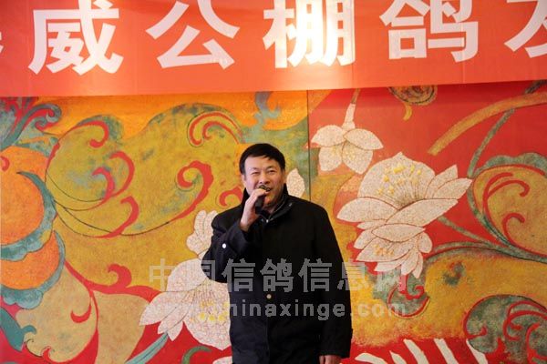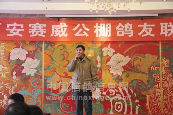 会议由西安市信鸽协会办公室主任李小刚主持。西安赛威公棚老板苏科峰先生首先致辞,表示欢迎省市体育局领导和省市信鸽协会领导出席,欢迎陕西地区的鸽友们的光临,赛威公棚是今年举办第一届大奖赛的新棚,希望得到鸽界的大力支持和帮助,我们将在西安市信鸽协会的监管下,严格执行中鸽协和省鸽协关于公棚竞赛管理的办法,将“公平、公正、公开”地打好比赛,为树立陕西暨西安市的良好公棚形象作出我们的贡献。