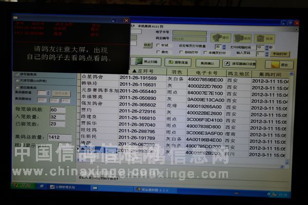 陕西新天平春棚查棚那天,一大早就来了许多鸽友,其中不少是外地、外省赶来看自己的存棚鸽子的鸽友。由于,新天平公棚事先准备工作扎实,提前收录了鸽友查看的鸽子清单,一切显得井井有条,现场秩序井然,确保了公棚逐羽扫描、检查和剔除病伤残鸽子和提交鸽友观看等工作,鸽友们对新天平公棚的工作给予好评。