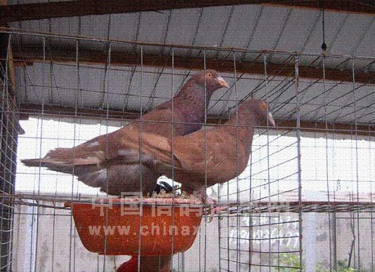 这些天,家里一堆鸽子出了一个如图一所示羽色的小鸽子来。是的,那是一对近亲的瓦灰鸽子,它们的共祖,是一个人称“火凤凰”的鸽子。(图片从网上找的,图一是红卡奴鸽——一种典型的隐性红羽色基因的肉用鸽。)