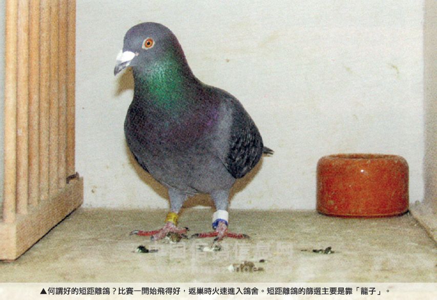 筛选短距离鸽的标准必须看它们对结果有正面或负面的影响。何谓好的短距离鸽?比赛一开始飞得好,返巢时火速进入鸽舍。除非天候极差,很难想象仅飞了100公里的健康鸽子会感到疲惫。鸽子的状态当然很重要,因为状态好对鸽子所有一切都有正面影响。因此短距离鸽的筛选主要就是靠“笼子”了。多数鸽主却花费大把银两,将鸽子的命运交给四方游走的鉴鸽人,在自己尚未好好做筛选之前,便让鉴鸽人给鸽子判了死刑。