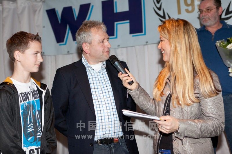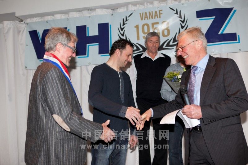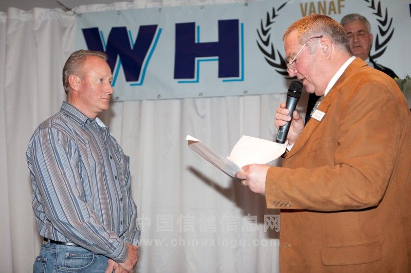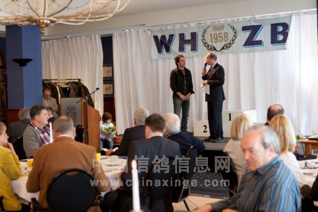 2012年3月17日,荷兰信鸽协会在国家中心菲亚纳酒店举行了2011年度全国WHZB(谁有最好)鸽王鸽舍颁奖大会,我很荣幸地又一次获得全国WHZB鸽王奖。去年我的一羽NL09-1232232雌鸽“神洲小姐”获得全国谁有最好雌鸽鸽王6位,一羽NL08-1587454雌鸽“欧洲小姐”获得全国谁有最好当日归长距离鸽王4位。今年由我的一羽NL10-1728686雄鸽“中国龙”给我拿下了2011年全国谁有最好秋赛鸽王全国冠军。