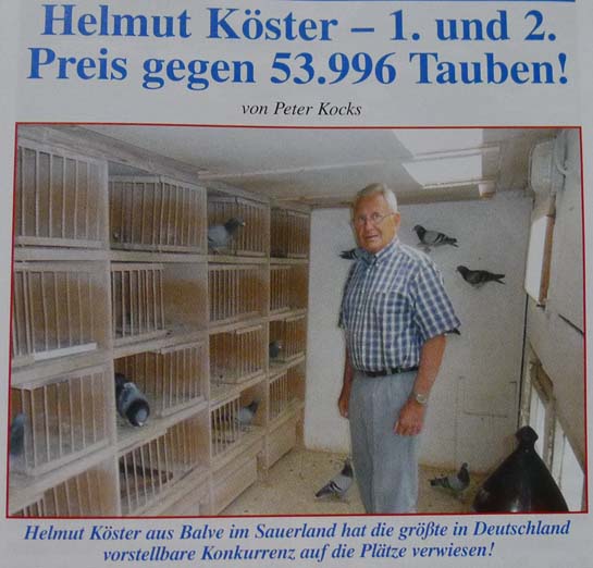 ——德国鸽友“赫尔穆特.考斯特”(Helmut K.ster),2011年荣获430公里53996羽冠、亚军。父母来自利奥.贺尔曼斯。