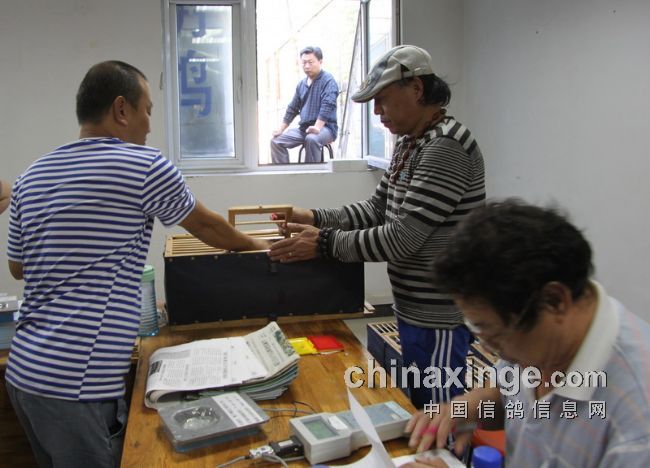据悉,本届赛事共销售2750枚特比环,8月初验鸽时2327羽,实际存棚率接近85%。经过鸽友自行训练放飞,有的已经参加过个别协会350公里的比赛了,并取得了好成绩,估计现存棚羽数在1800羽左右。今日集鸽,赛鸽只装在鸽车两侧上面三层笼内,每笼装80羽。鸽友交鸽采取拿号交鸽,裁判按笼号依次轮流装笼,禁止同一名参赛鸽友的赛鸽集中装入一个鸽笼。