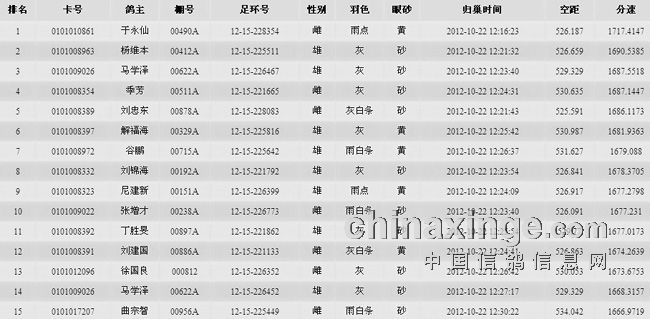青岛市信鸽协会2012年秋特比环大奖赛、特别环二关赛于2012年10月22日举行,司放时间是22日早上7:10,地点是保定市,空距500公里,司放羽数2869羽,由保定市信鸽协会监放。当时天气晴、北风三级。