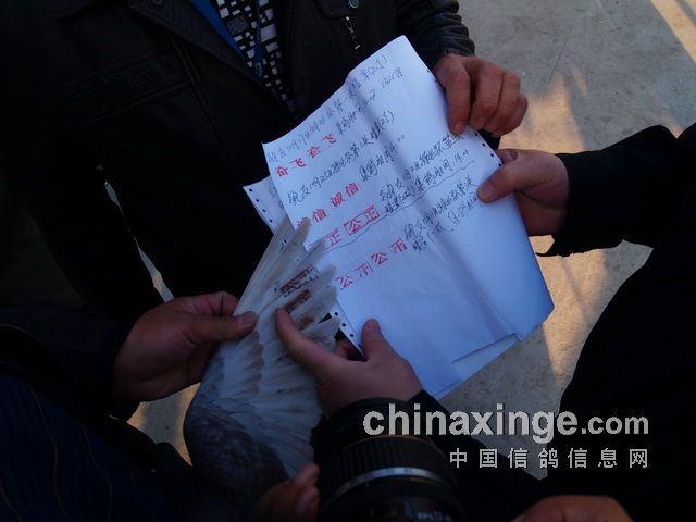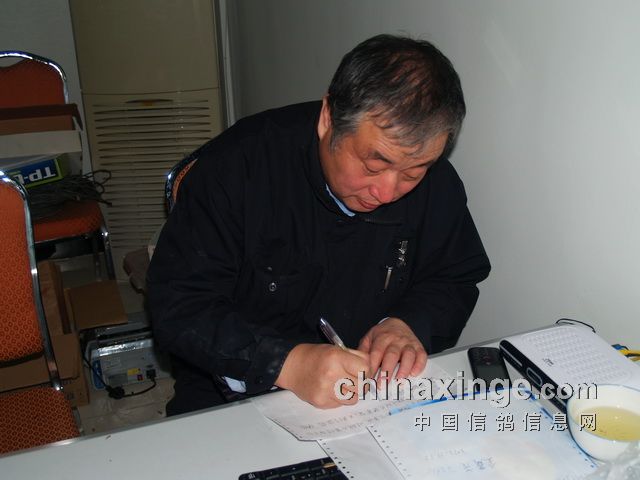 前十名报满后,经电话联系,马上由飙友集团公司董事长赵建彰先生带队,由北京市信鸽协会委派的执行裁判王志雄先生、中信网专栏作家魏亮、宋福玉先生,飙友集团公司牛魁祥先生等一行四人组织查棚。