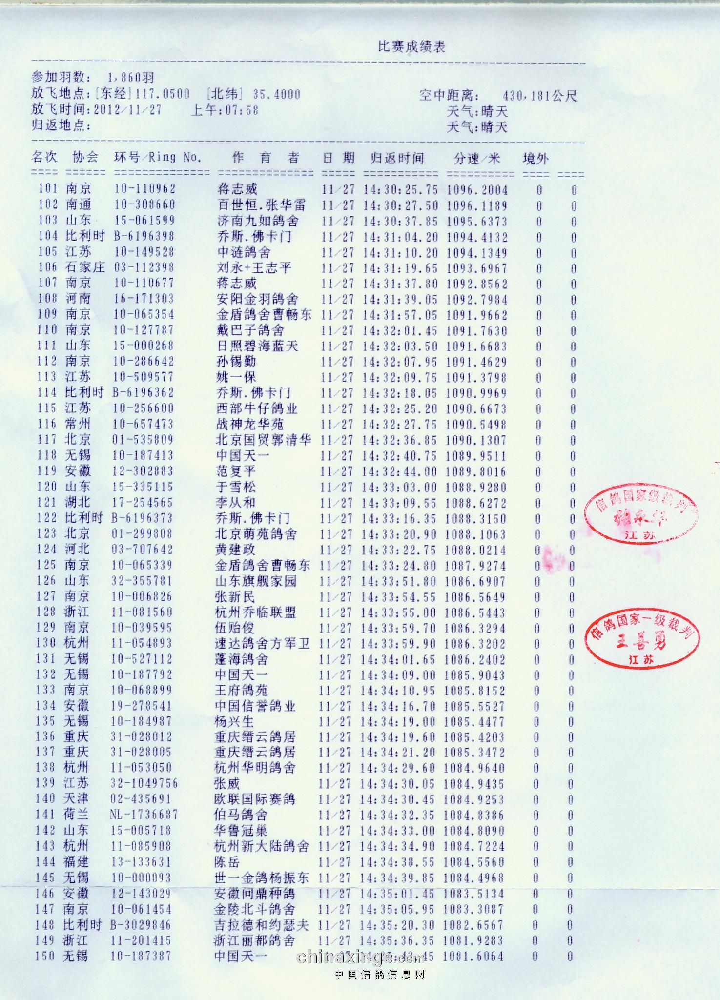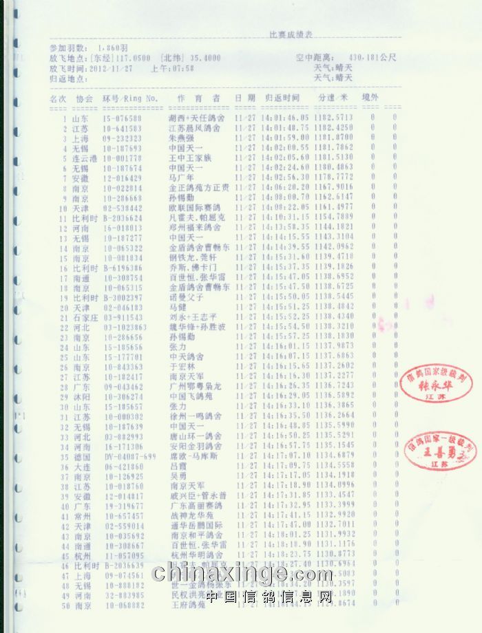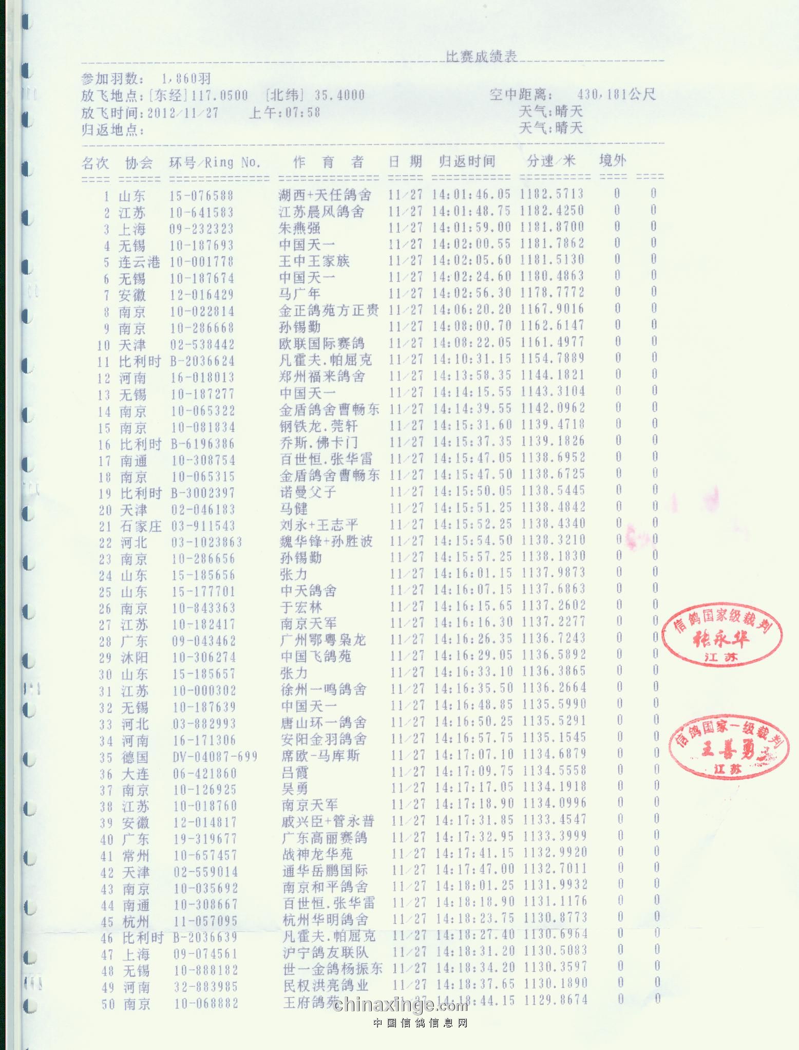 2012五台山决赛(第二关)成绩单原件
