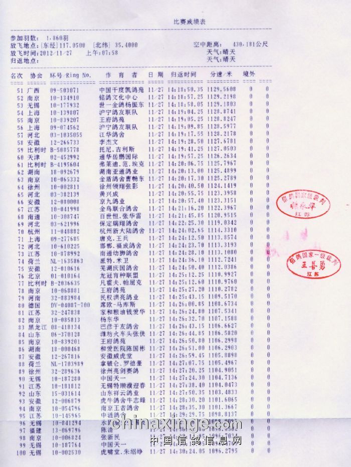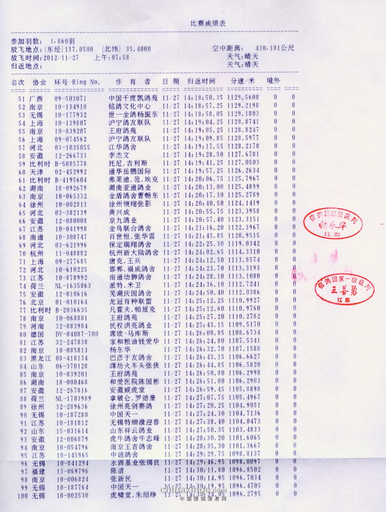 江苏五台山公棚决赛百名成绩单