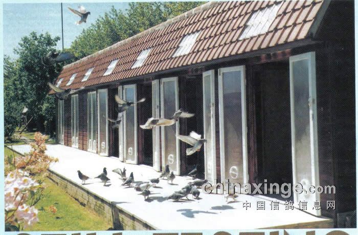 种鸽舍和幼鸽舍位于赛鸽舍两边,前面都配有很大的晾晒笼,种鸽可以到晾笼中观察到周围的环境。自来水直接接入每间鸽舍,还用了自然喷嘴淋浴头,使鸽群可以在接近自然状态下享受淋浴。