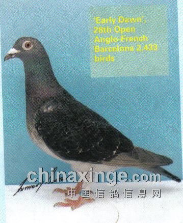 (图片:全英大名鸽,亨特父子培育,父亲杰夫的最爱“黑色钻石”号,先后夺得全英波城冠军、9名、16名,5次参加波城国际赛入赏,2次参加帕品那国际赛入赏,3次参加巴塞罗那入赏。先后11次飞越1000公里国际赛,23次穿越英吉利海峡,使翔到9岁,在其辉煌竞翔生涯中3次被枪伤,2次被游隼抓伤都不死必归,胜利归返老巢)