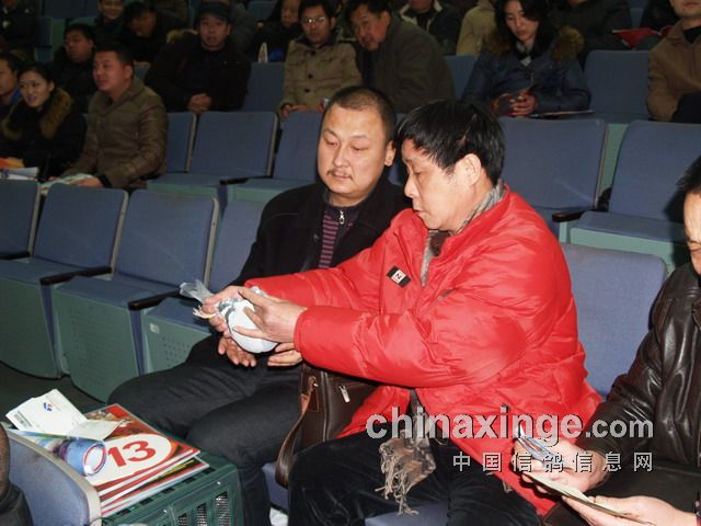 随着信鸽事业的不断发展壮大,女士养鸽和参与信鸽活动的越来越多,甚至出现很多赛鸽高手。她们当中有的是贤内助,有的是为夫君打理鸽窝,养鸽、赛鸽成了她们生活的一部分。在“铁鸽三项”拍卖会上就出现了很多女士的身影,其中最耀眼的算是这位穿红衣服的女士。
