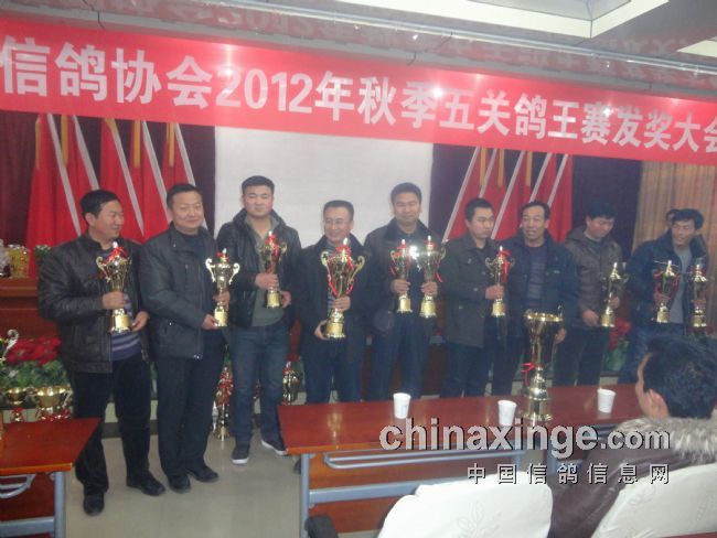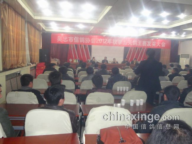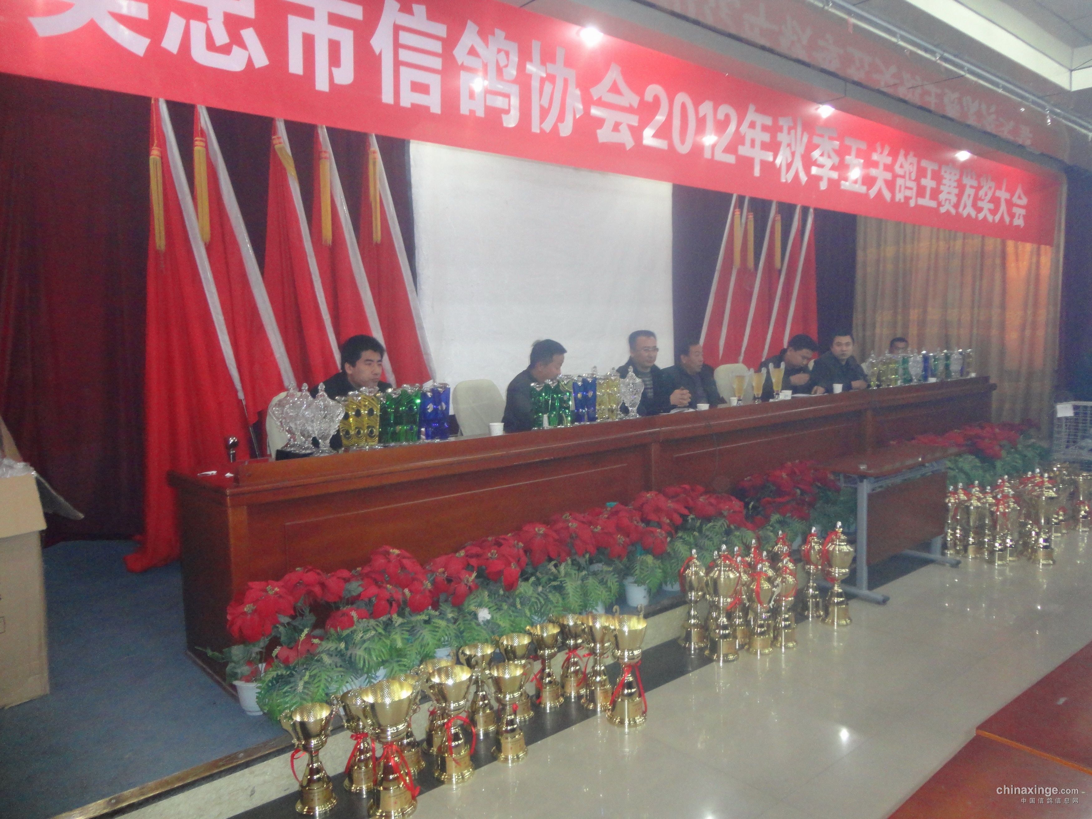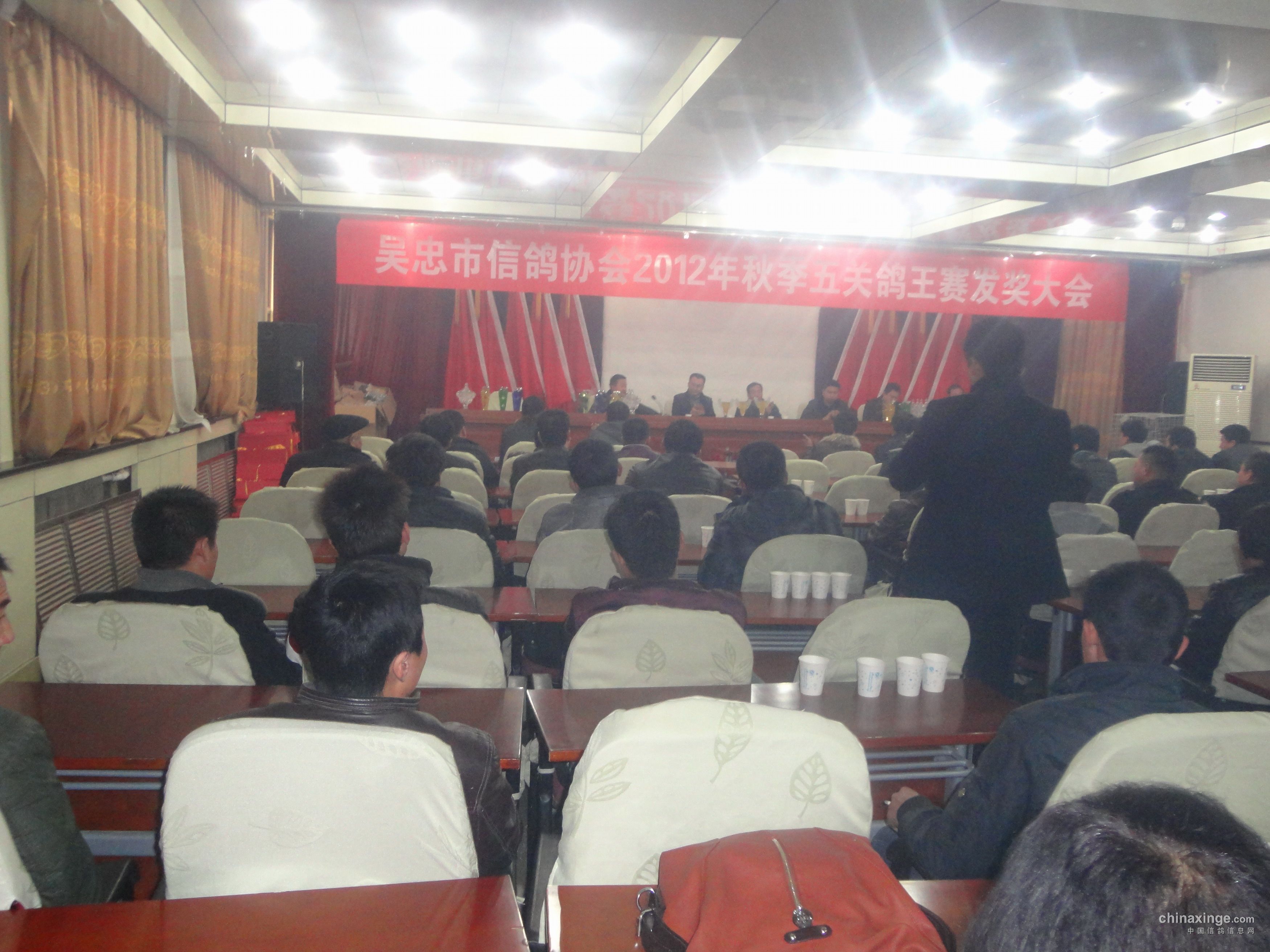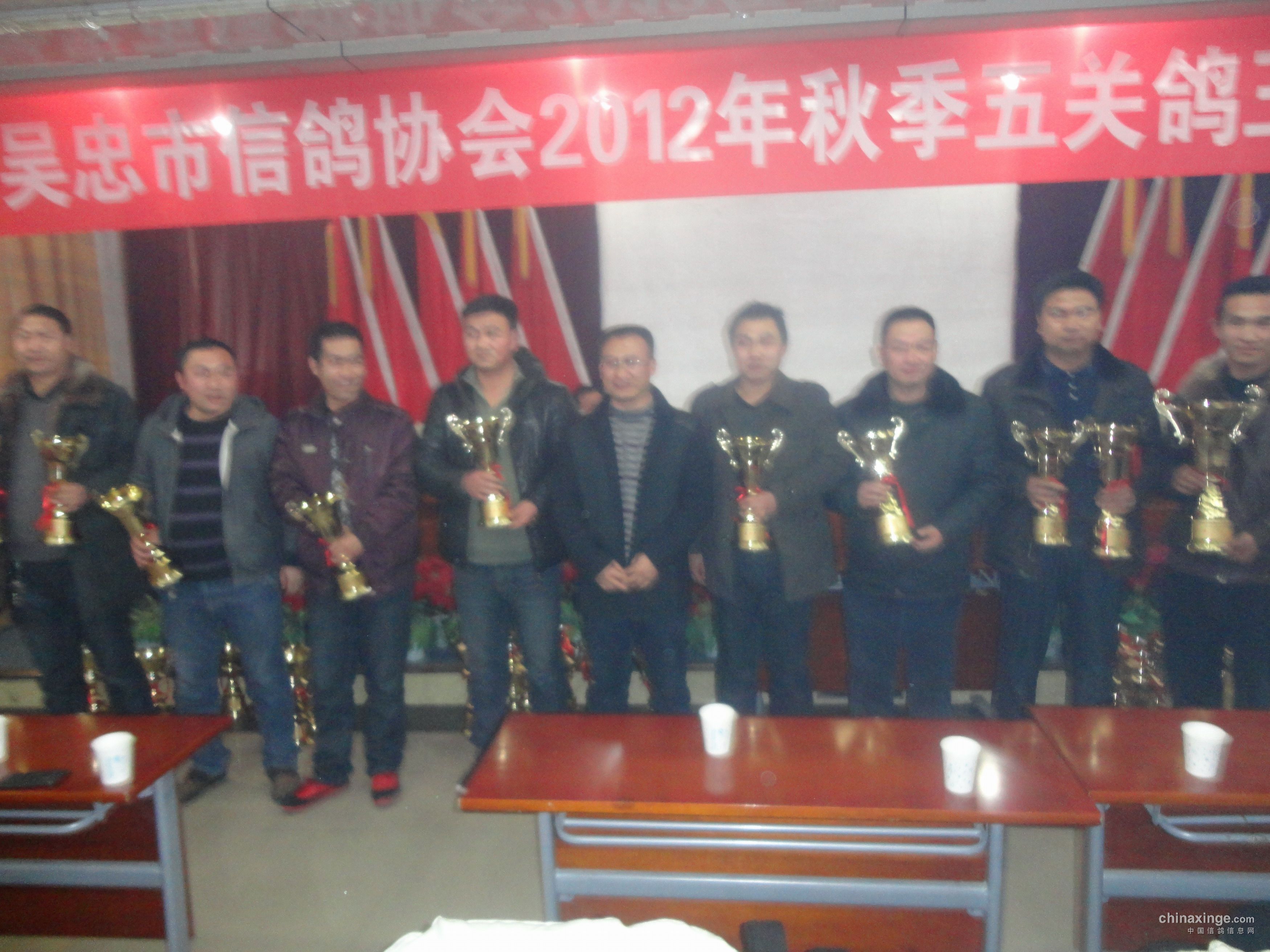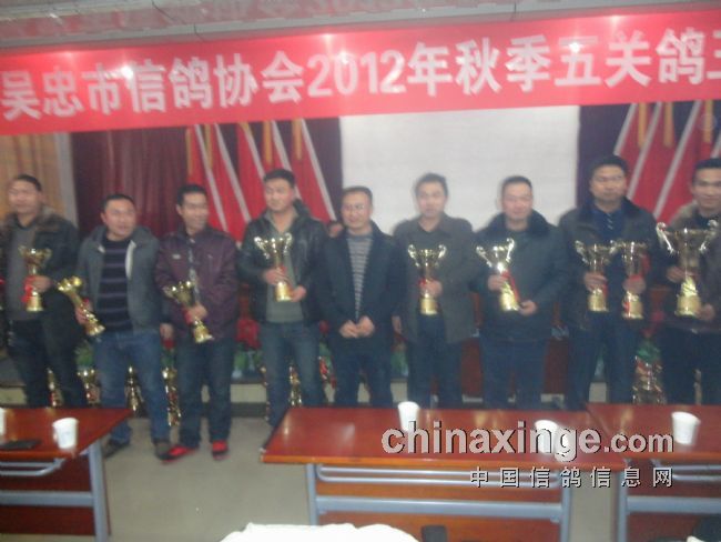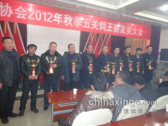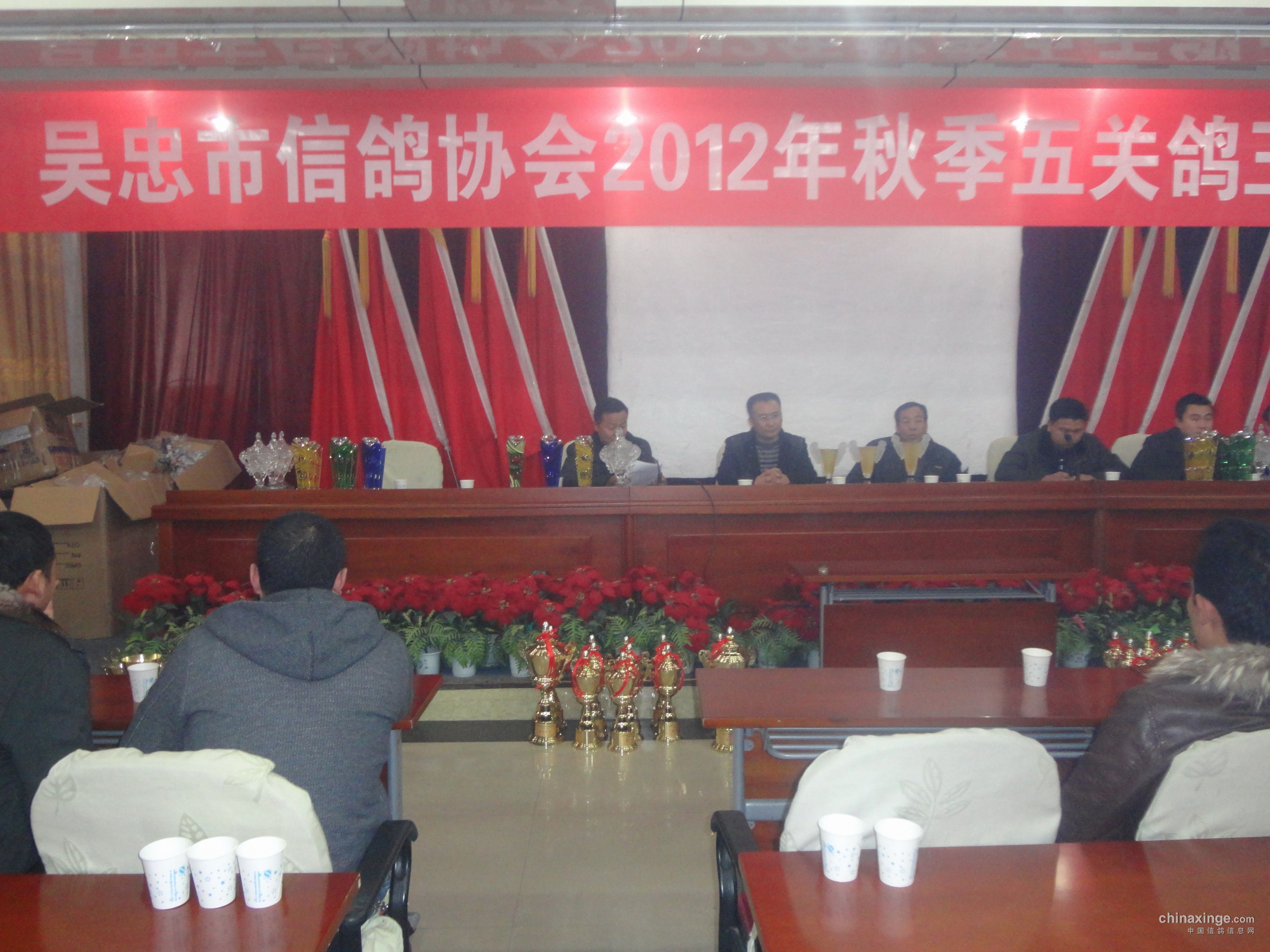 2013年1月19日宁夏吴忠市信鸽协会在银南宾馆会议室,举行了2012年秋冬季五关鸽王赛颁奖会,参加会议的领导有主席周学东、副主席李成,郝耀军、马吉军、牛新刚、李军等班子成员和获奖鸽友。会议由副主席李成主持,马吉军作了鸽王赛财务支出情况汇报,竞翔部长周海军宣读了二、三、四、五关(首关颁奖会已经开过)单关优胜和团体、指定,以及综合五关鸽王优胜者名单,鸽会主席周学东作了工作总结,下午5时会议圆满结束。获奖鸽友的名单已经在中信网发布,不在赘述。以下为会场图片花絮: