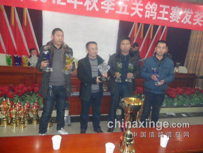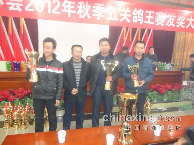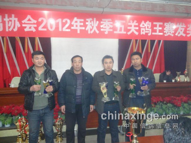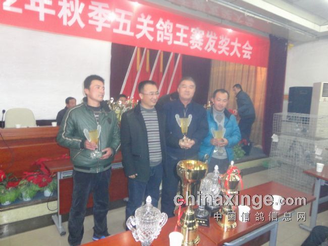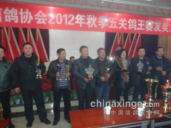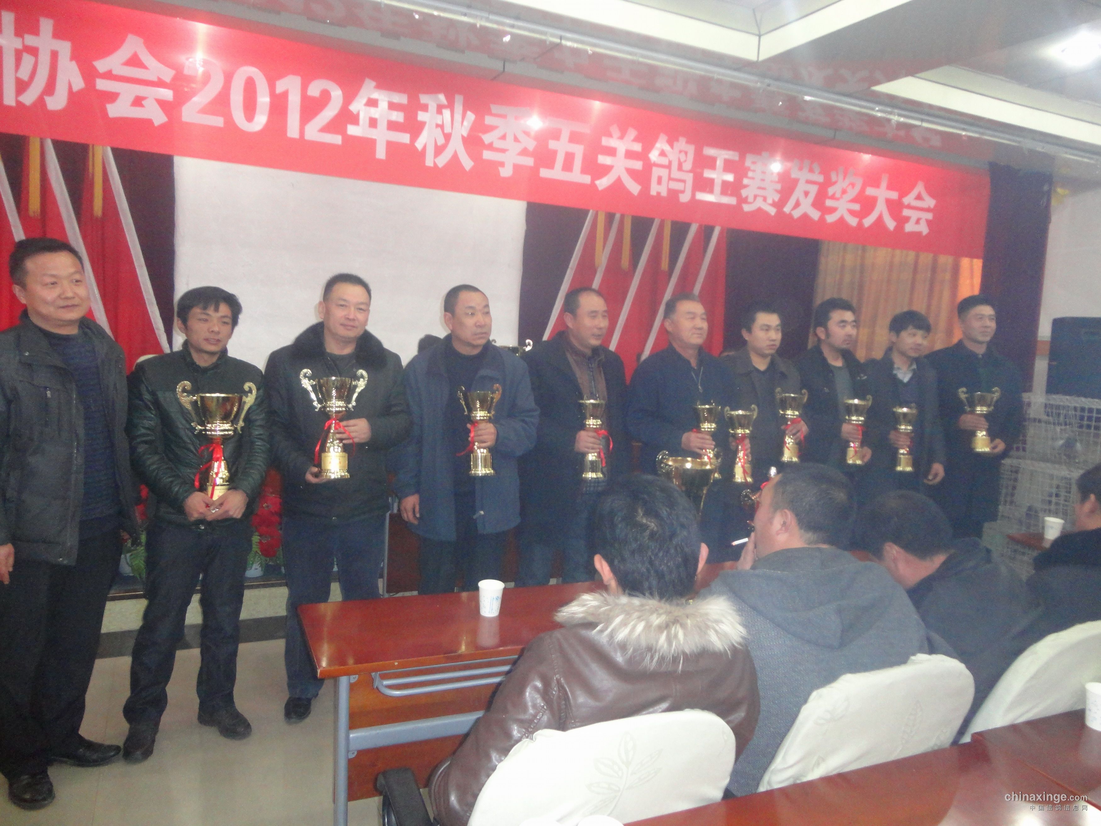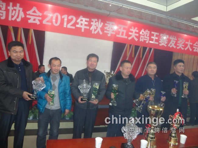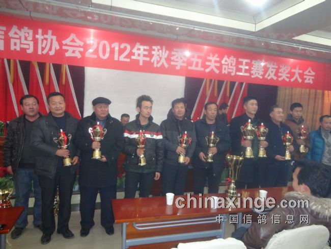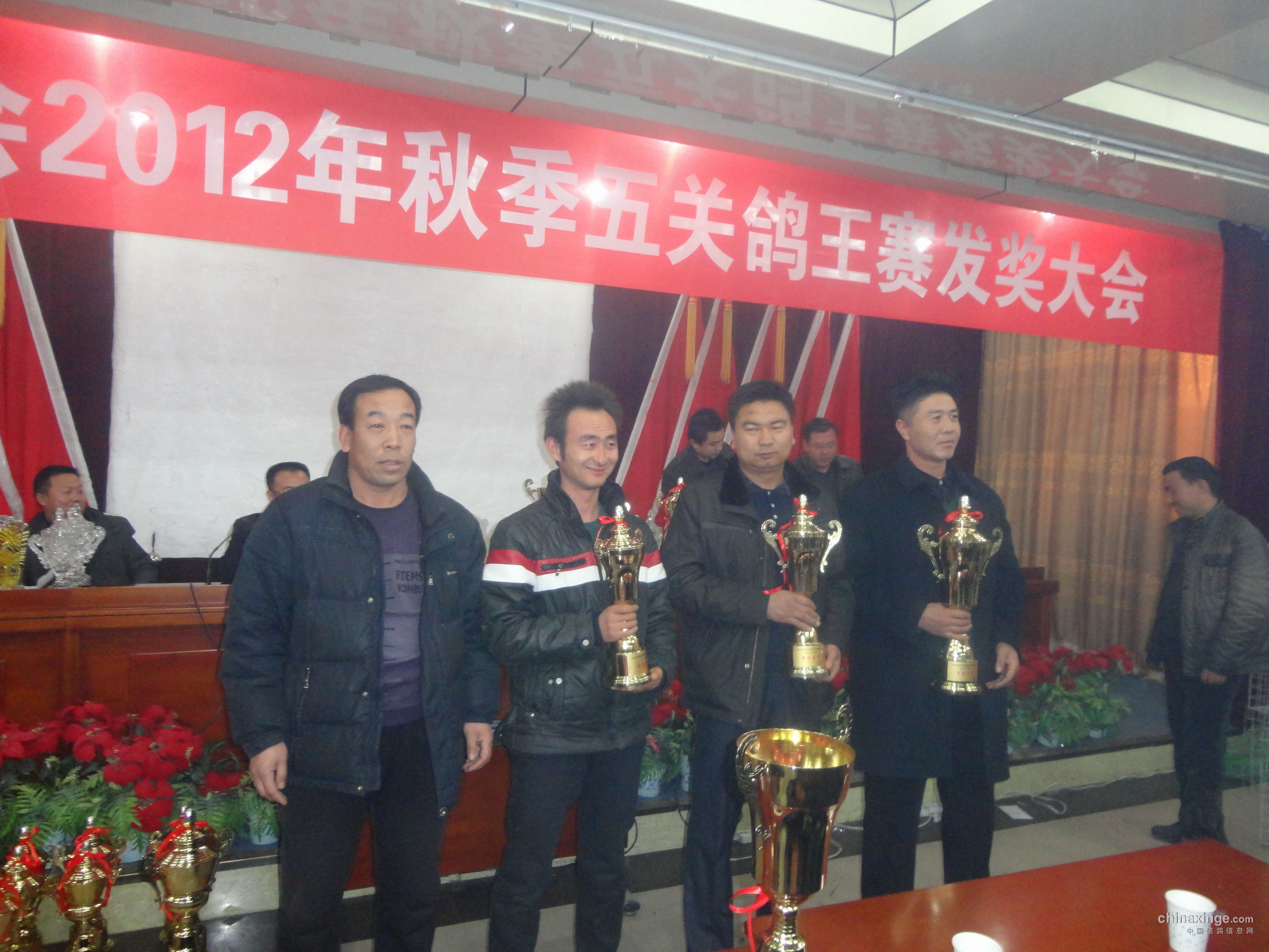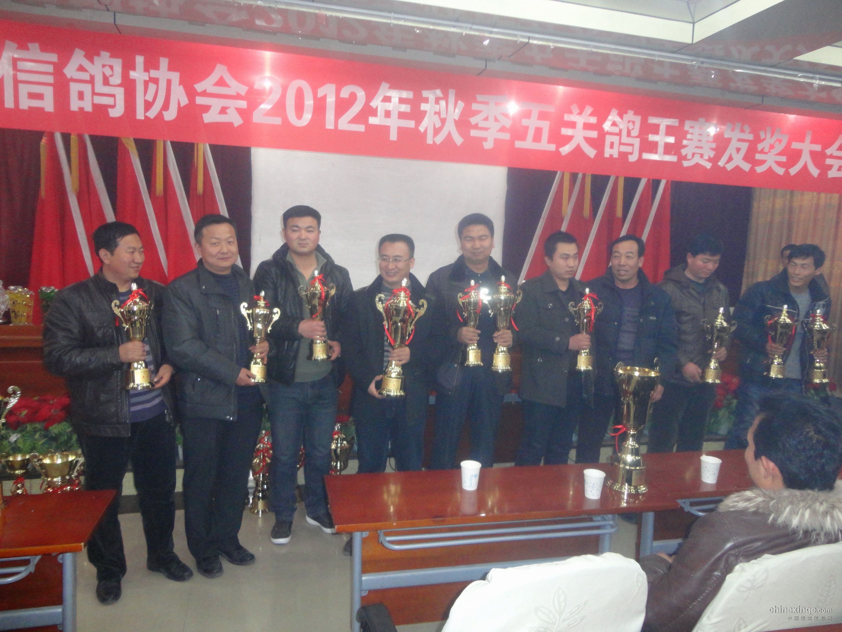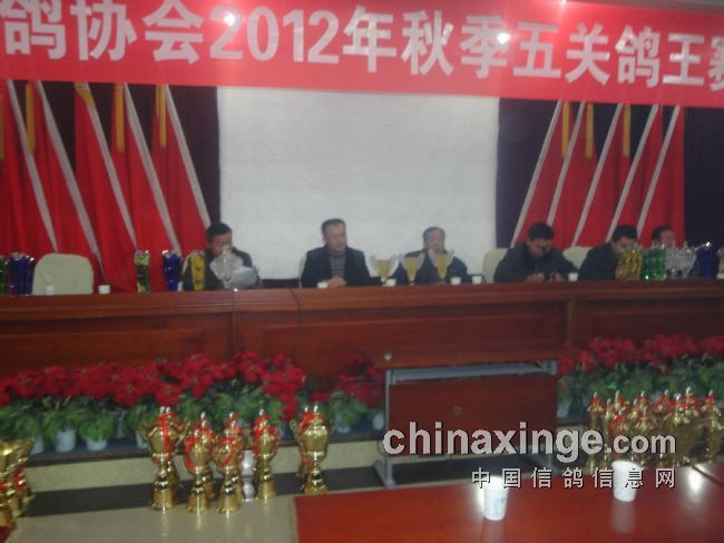 2013年1月19日宁夏吴忠市信鸽协会在银南宾馆会议室,举行了2012年秋冬季五关鸽王赛颁奖会,参加会议的领导有主席周学东、副主席李成,郝耀军、马吉军、牛新刚、李军等班子成员和获奖鸽友。会议由副主席李成主持,马吉军作了鸽王赛财务支出情况汇报,竞翔部长周海军宣读了二、三、四、五关(首关颁奖会已经开过)单关优胜和团体、指定,以及综合五关鸽王优胜者名单,鸽会主席周学东作了工作总结,下午5时会议圆满结束。获奖鸽友的名单已经在中信网发布,不在赘述。以下为会场图片花絮: