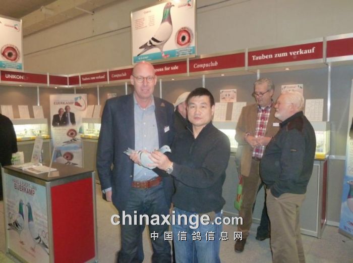荷兰爱亚卡普信鸽是展商最大的牌子,买到他的三羽名鸽子代。
