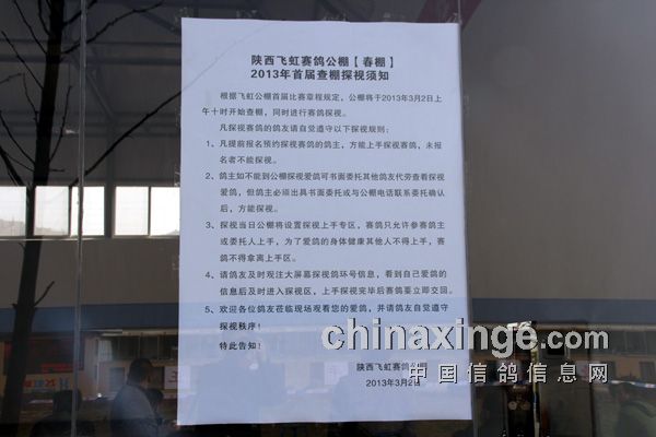 现在,陕西飞虹公棚本次第一届大奖赛的存棚鸽能够达到这个数量已经是相当成功的,说明鸽界对飞虹公棚的信誉和饲养管理是得到鸽界认可的,接下来他们公棚将开始家飞强训和短训工作,我们祝愿飞虹公棚的比赛取得圆满成功。希望飞虹继续能以“公平、公正、公开”和干净透明的竞赛来报达各位鸽友,为陕西公棚事业再添一个里程碑,再做新贡献。