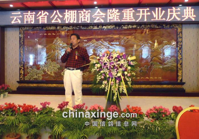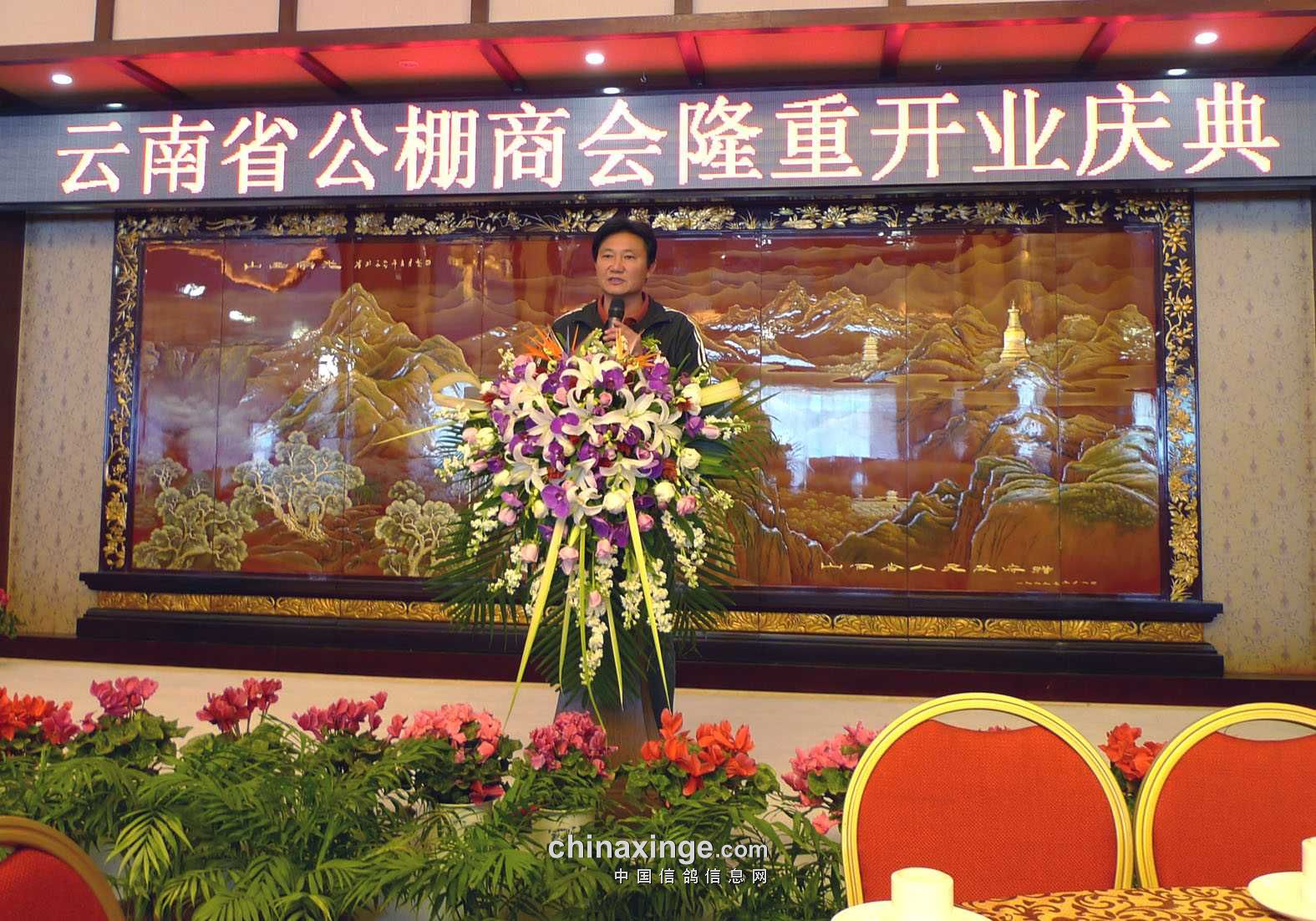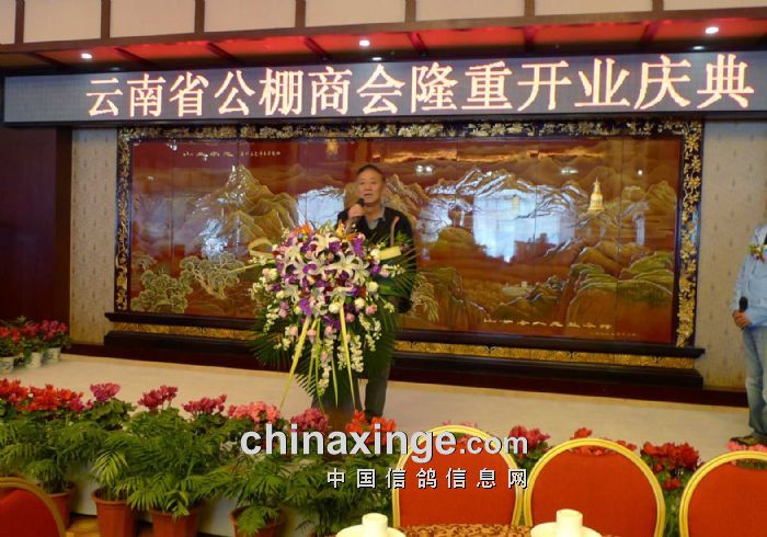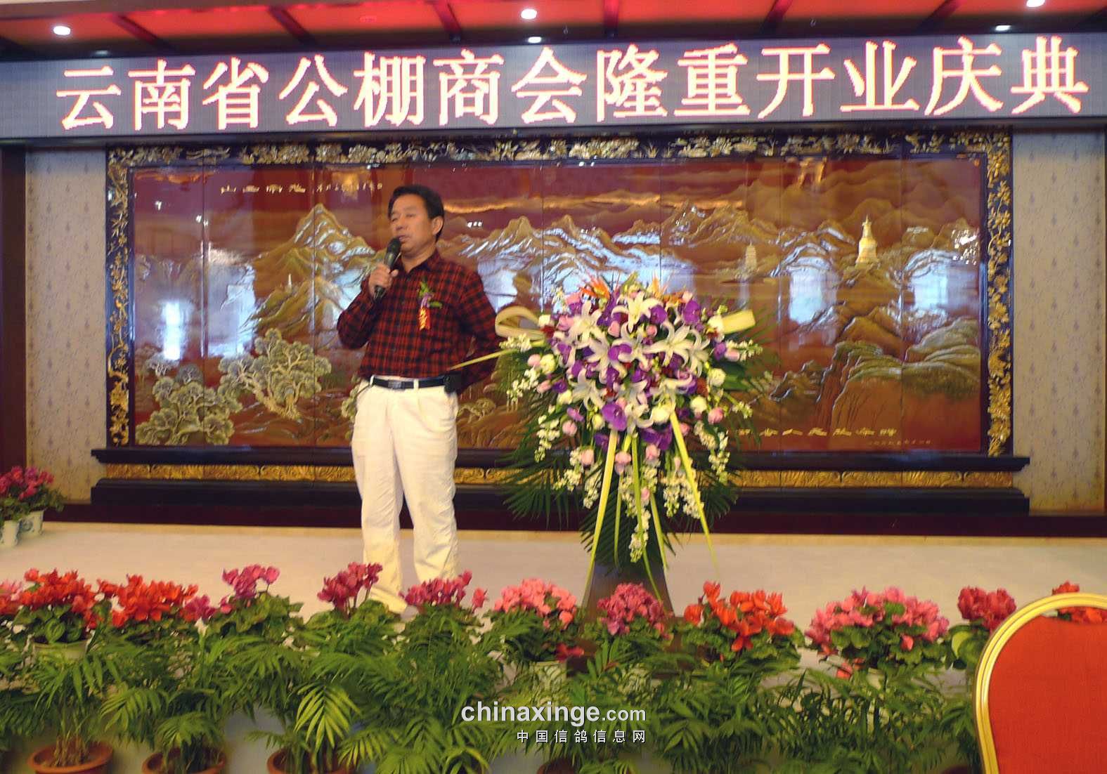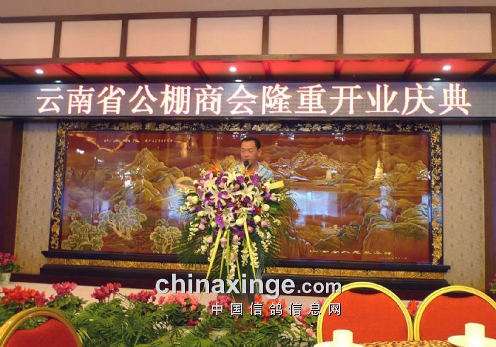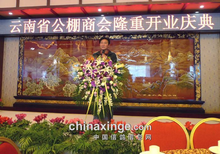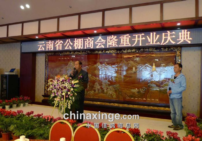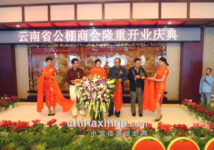 云南省赛鸽公棚商会开业庆典于2013年3月23日在云南昆明世博园中国馆华美大厅举行。