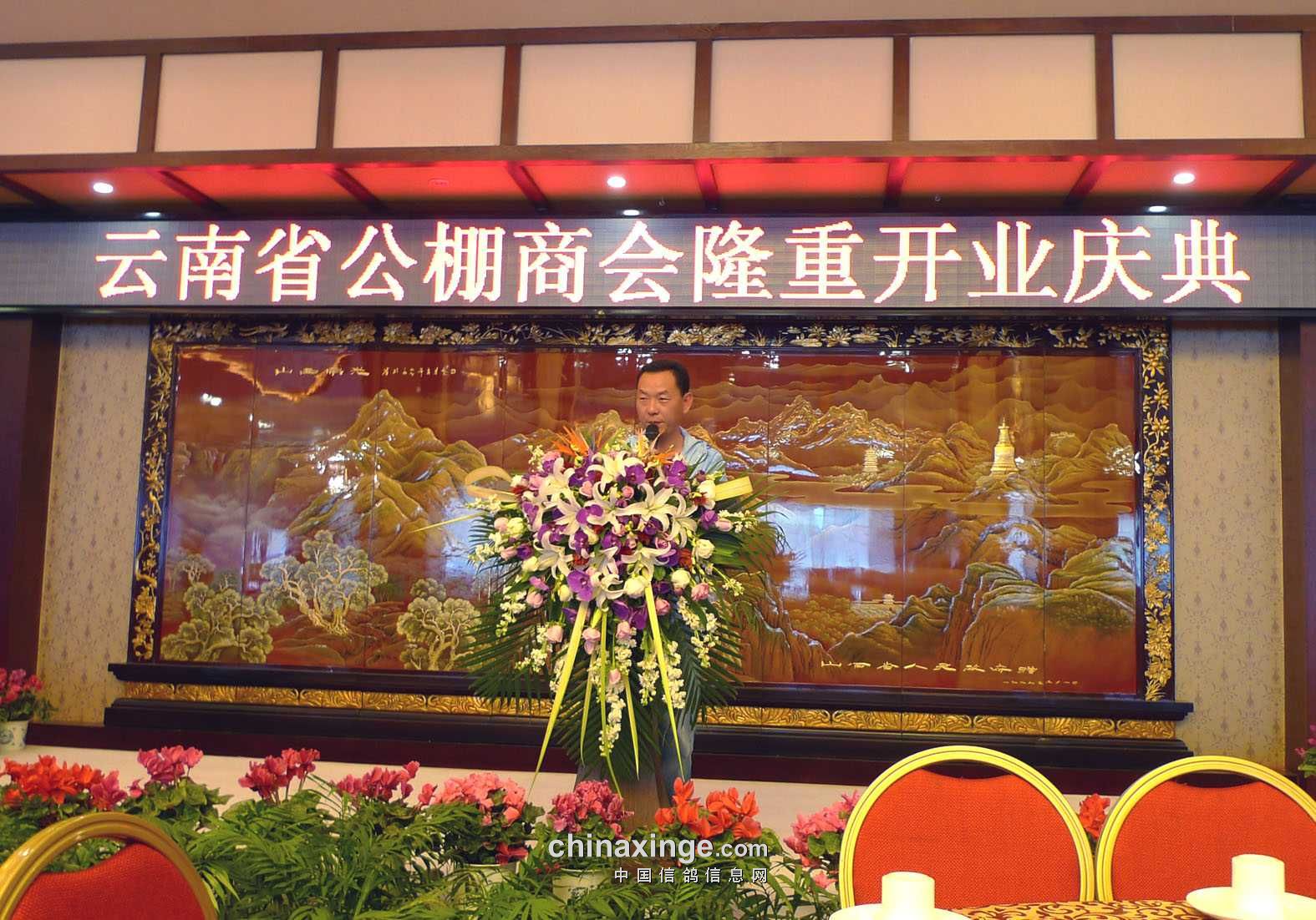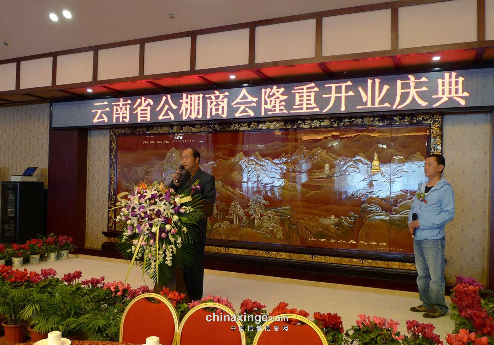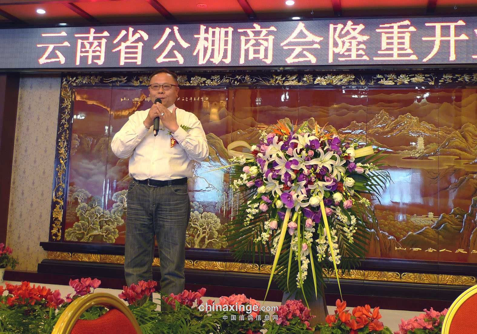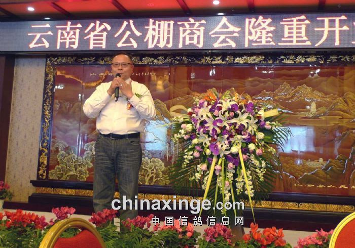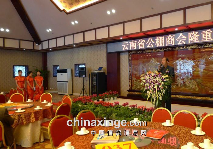 云南省赛鸽公棚商会开业庆典于2013年3月23日在云南昆明世博园中国馆华美大厅举行。